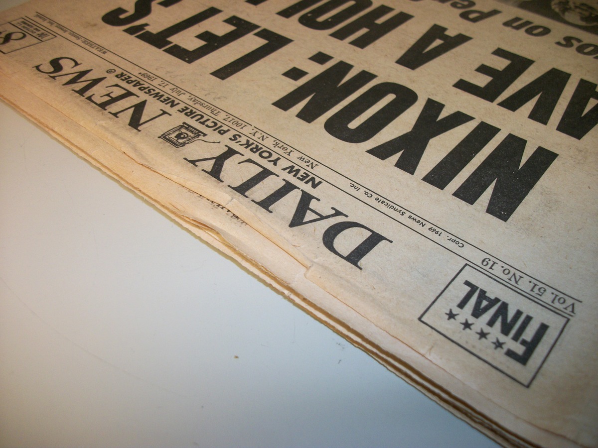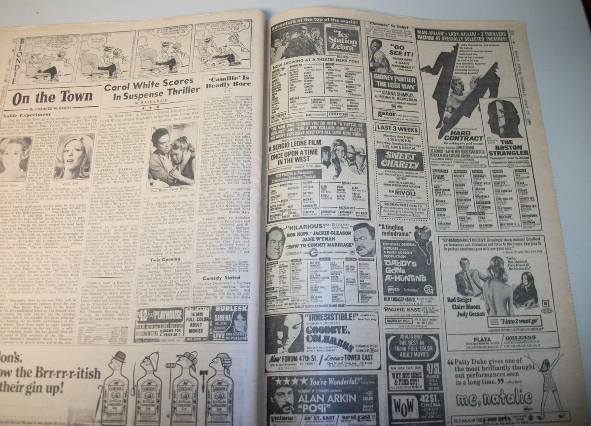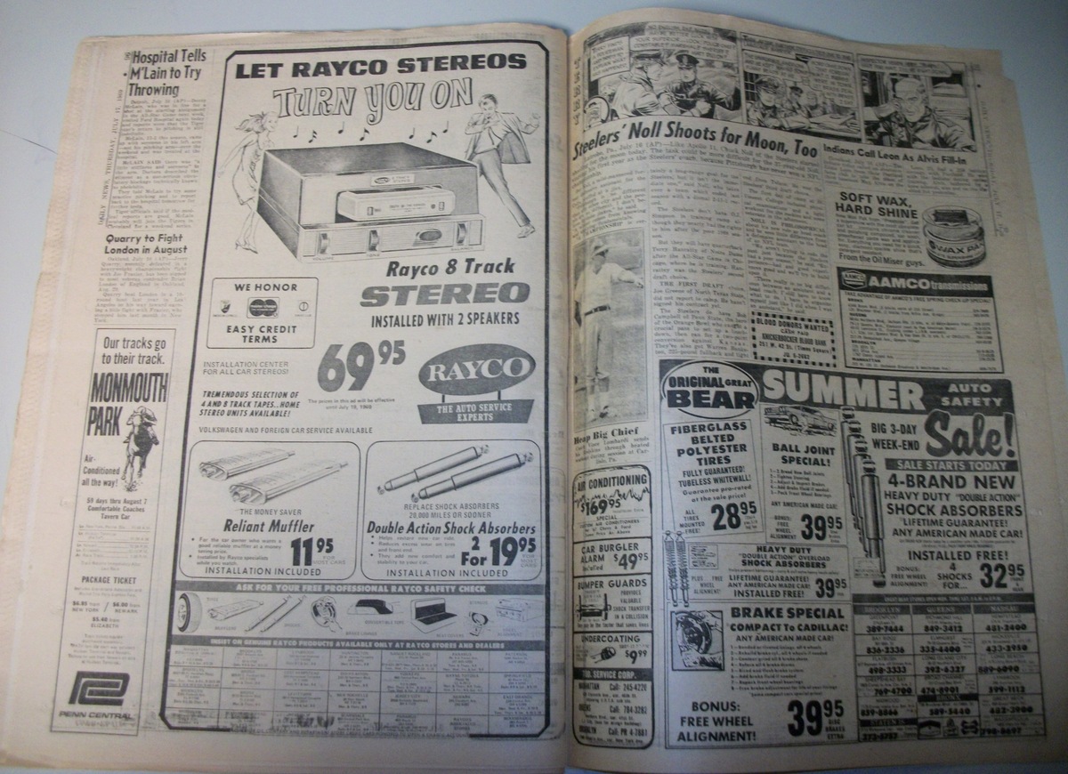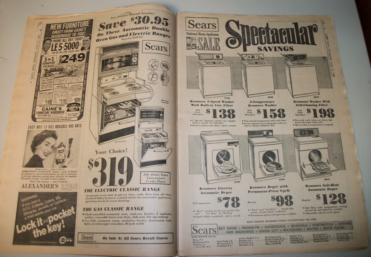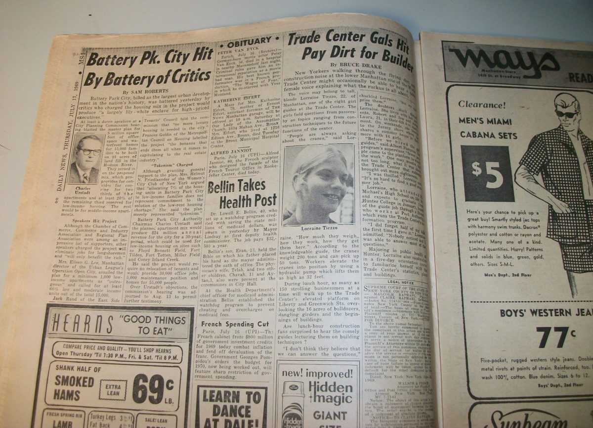 New York Daily News – Thursday July 17, 1969 What you see in the pictures is what you get: all 104 pages are included. This is a very interesting old newspaper which features as the front page stories: “NIXON: LET’S HAVE A HOLIDAY” “Astros on Perfect Moonbeam”; There are articles about: