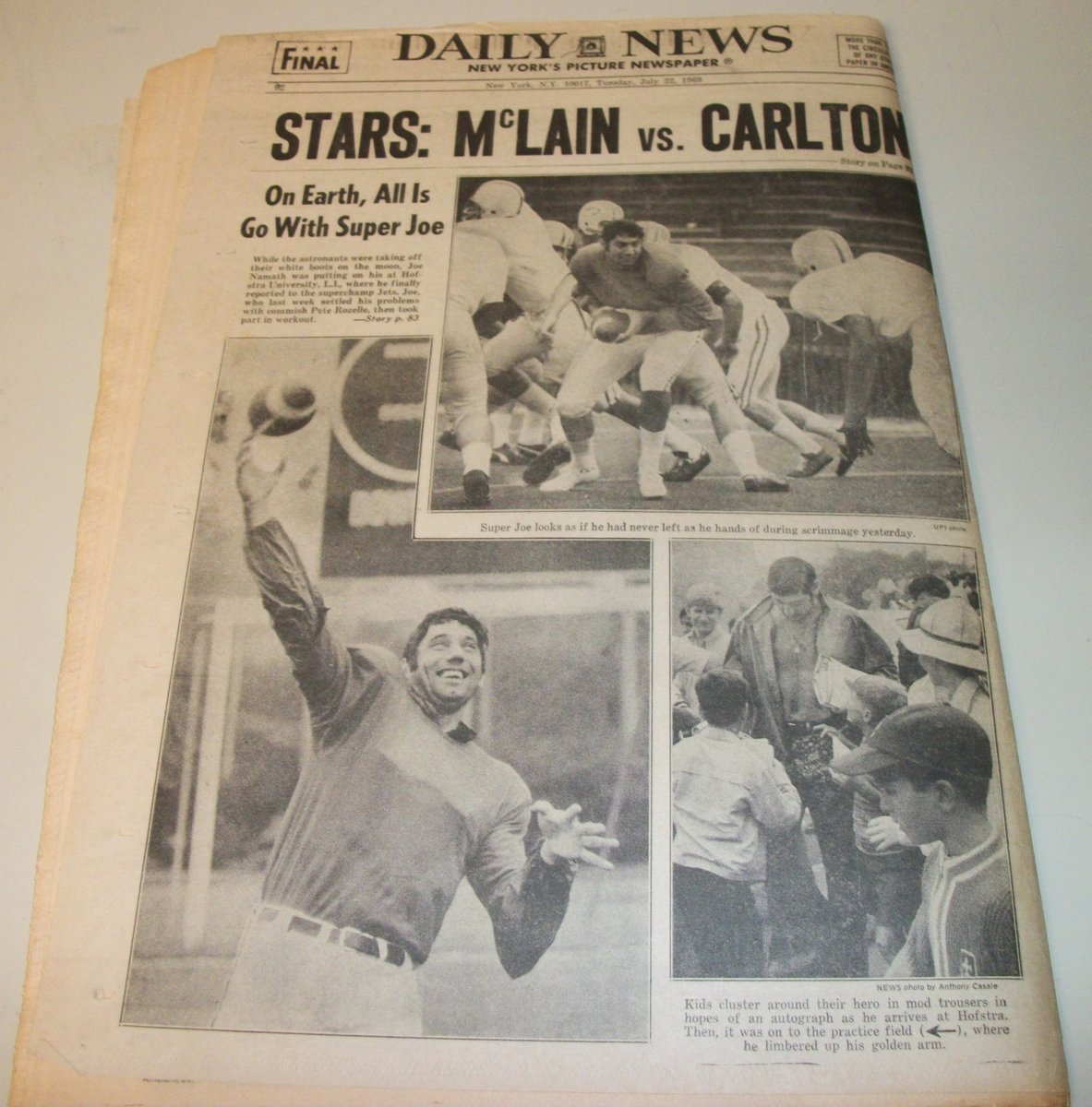 New York Daily News – Tuesday, July 22, 1969 What you see in the pictures is what you get: all 92 pages are included. This is a very interesting old newspaper which features as the front page stories: They Dock!, U.S. Eases Trade, Travel Ban on China, Teddy to Fight Crash Charge; There are articles about: