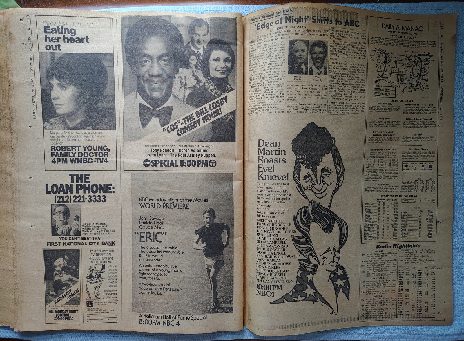- Don’t miss ‘Cos’ – The Bill Cosby Comedy Hour with Tony Randall, Karen Valentine, Loretta Lynn, and The Paul Ashley Puppets – at 8PM on ABC 7.