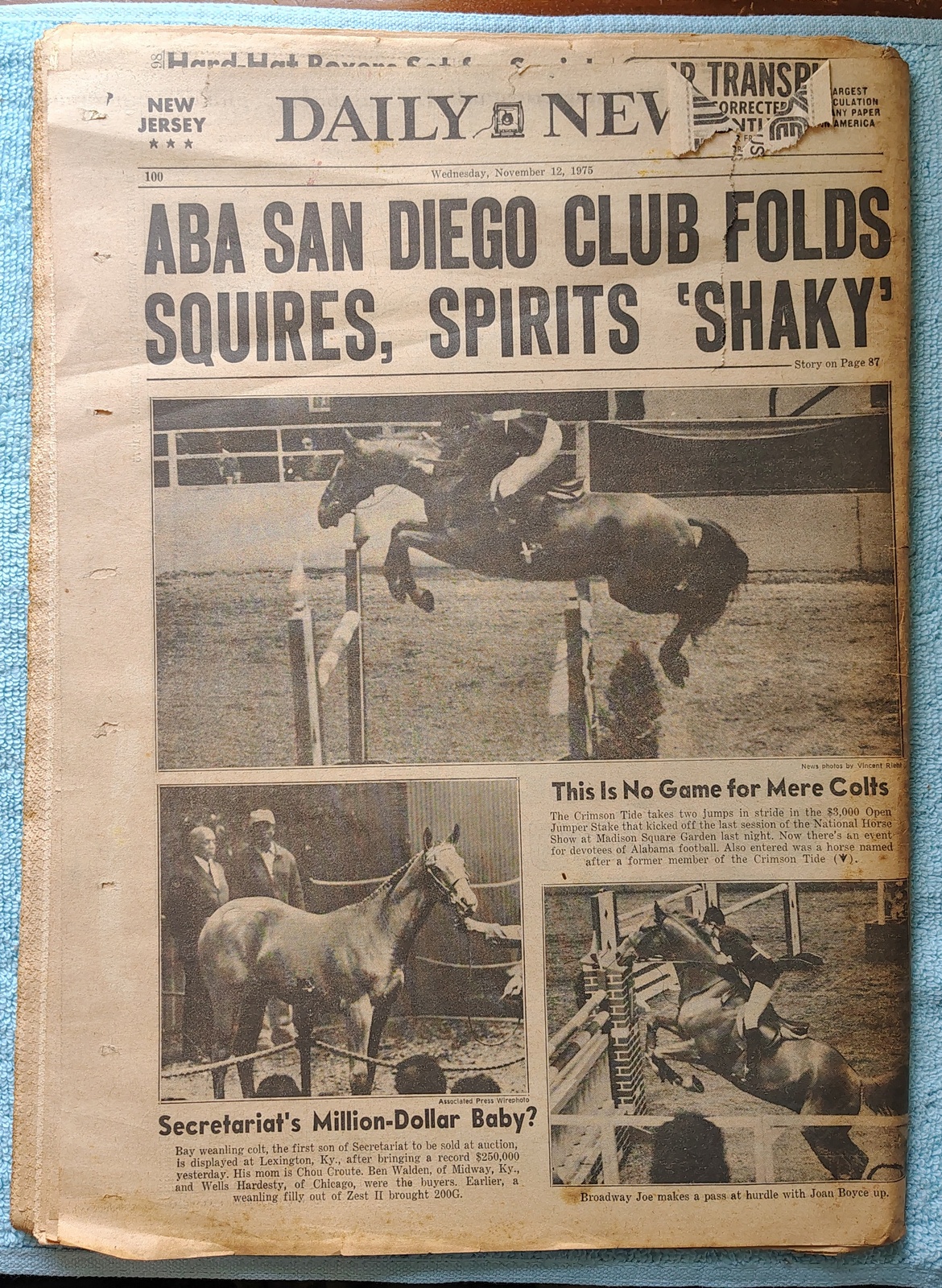 - The back page features pictures of the son of Secretariat who brought $250G at auction, and action at the National Horse Show at Madison Square Garden.