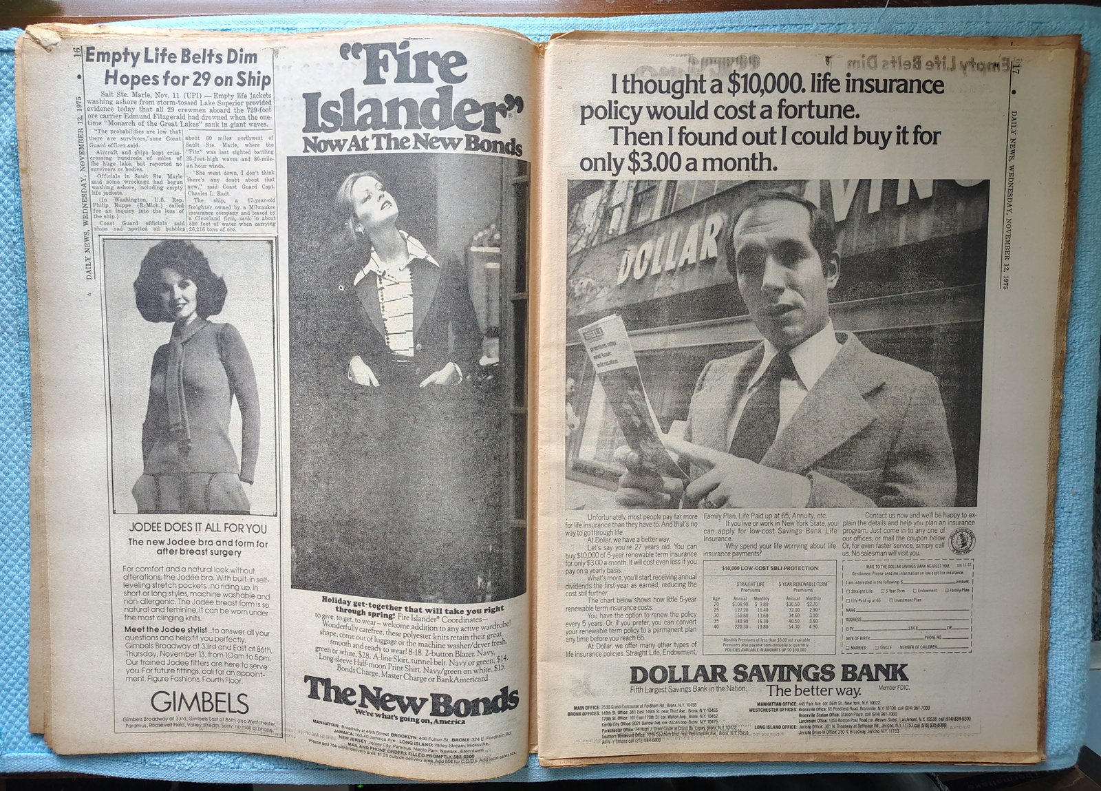 - ‘Empty Life Belts Dim Hopes for 29 on Ship’ – The Edmund Fitzgerald’s life belts have been found, but no survivors of the sinking.