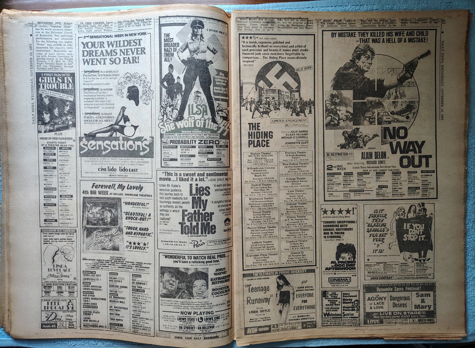 - Movie ads include: Rooster Cogburn and the Lady, No Way Out, The Hiding Place, Lies My Father Told Me, Ilsa She Wolf of the SS, and more!