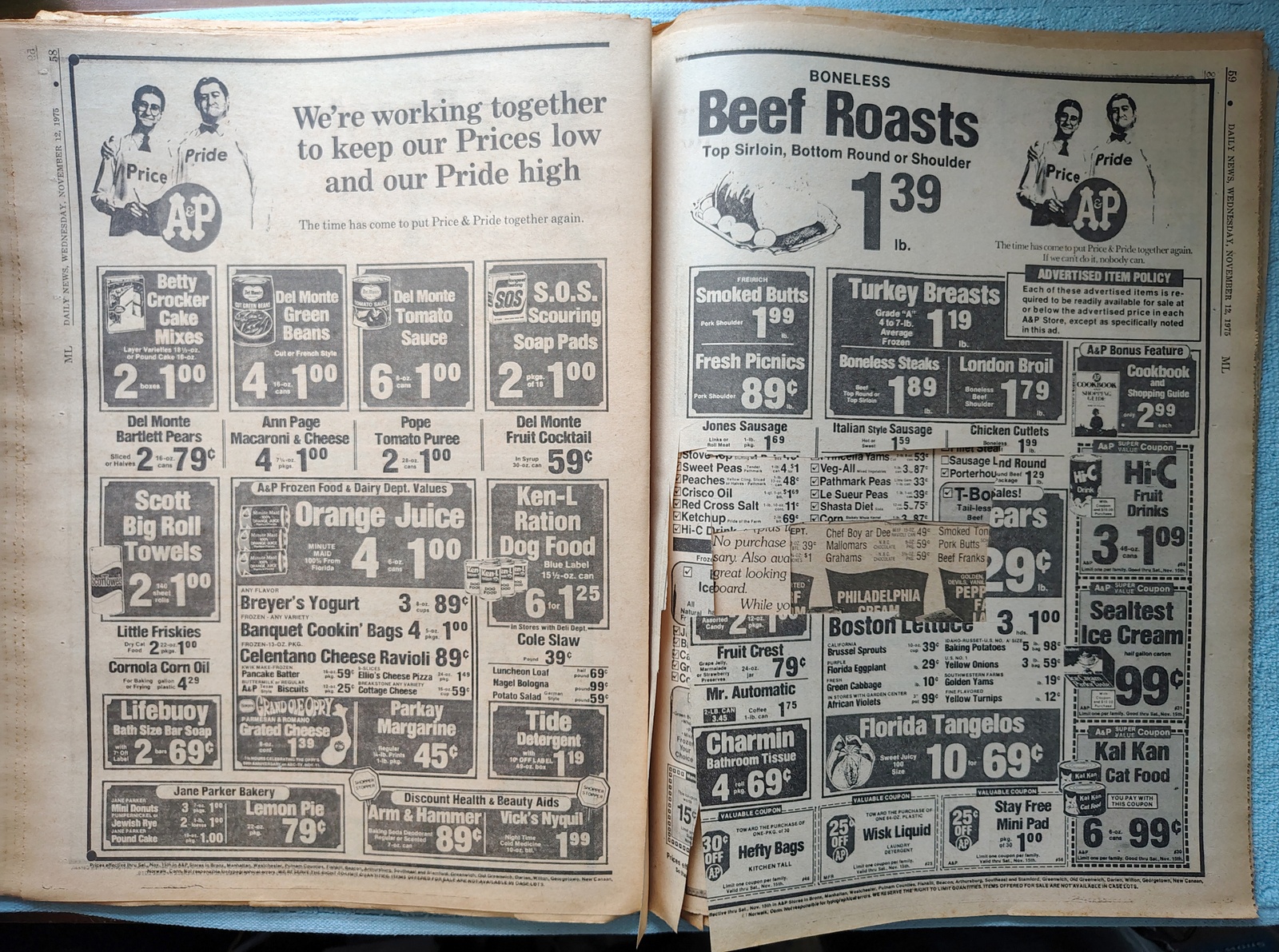 Good readable condition but please note the discoloration, wear / tears around the edges, and lots of coupons have been clipped – LOOK AT THE PICTURES!