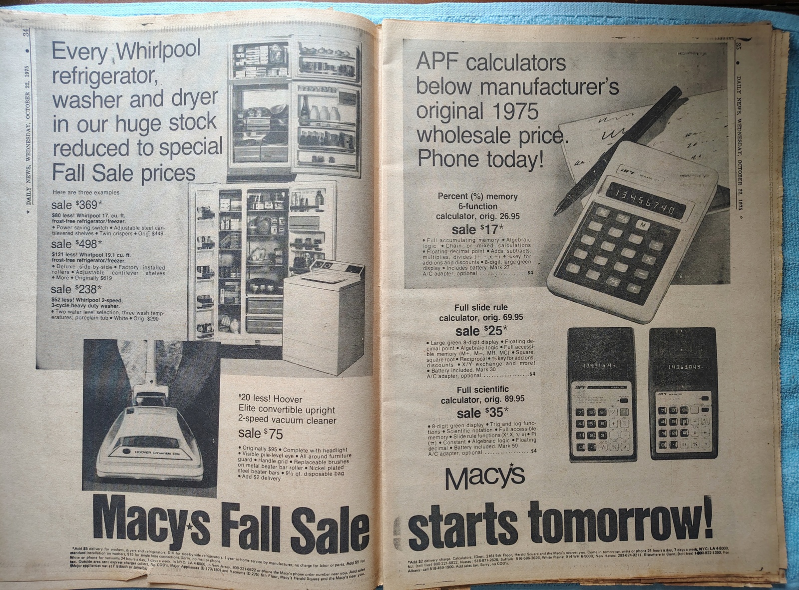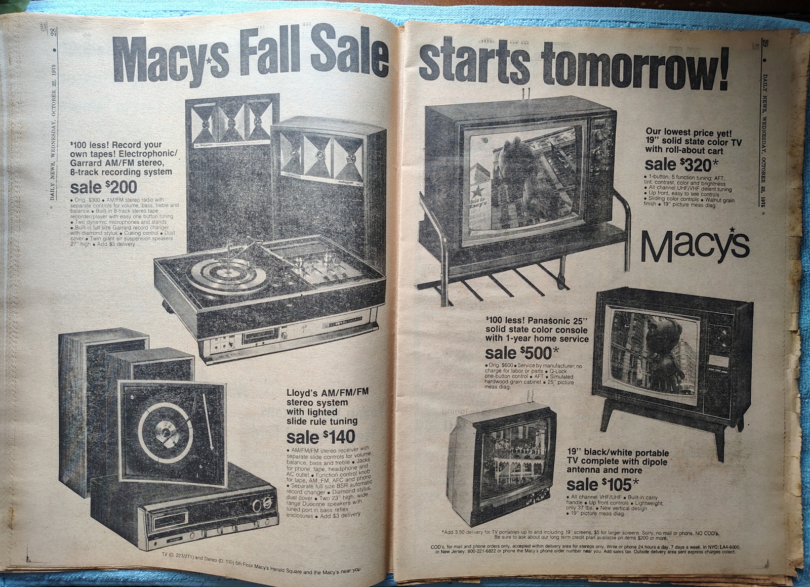 - Macy’s has a 19″ Solid State color TV with roll-about cart for only $320.