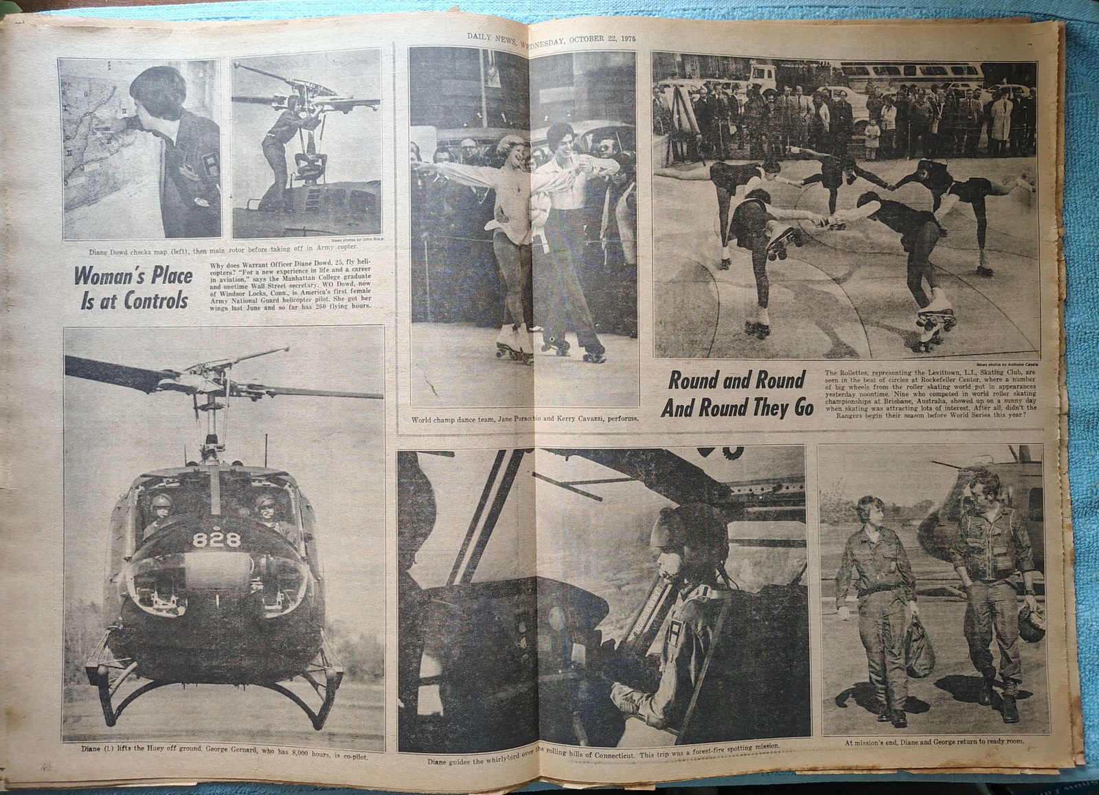 - The centerfold has pictures of the first female National Guard helicopter pilot – Diane Dowd as well as roller skating dancers.