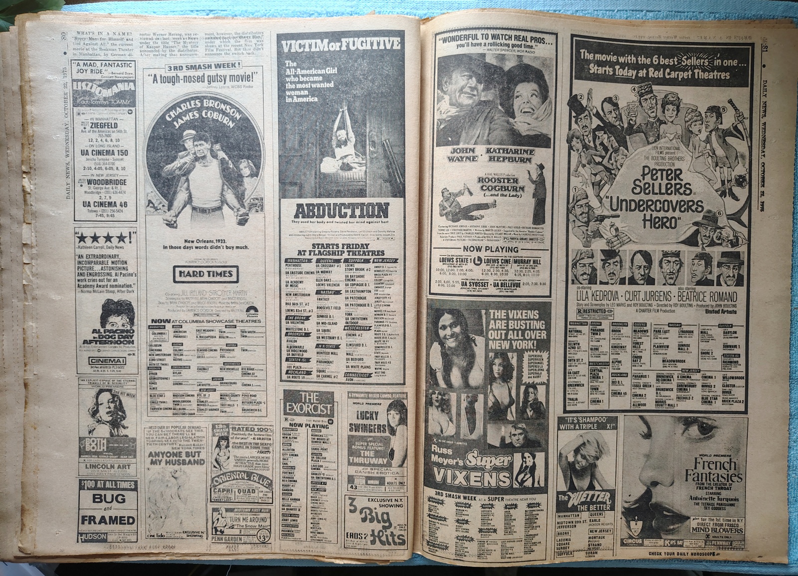 - Movie ads include: A Double Feature: Clint Eastwood in Dirty Harry and Magnum Force, Rooster Cogburn and the Lady, 3 Days of the Condor, Lies My Father Told Me, Jaws, and more!
