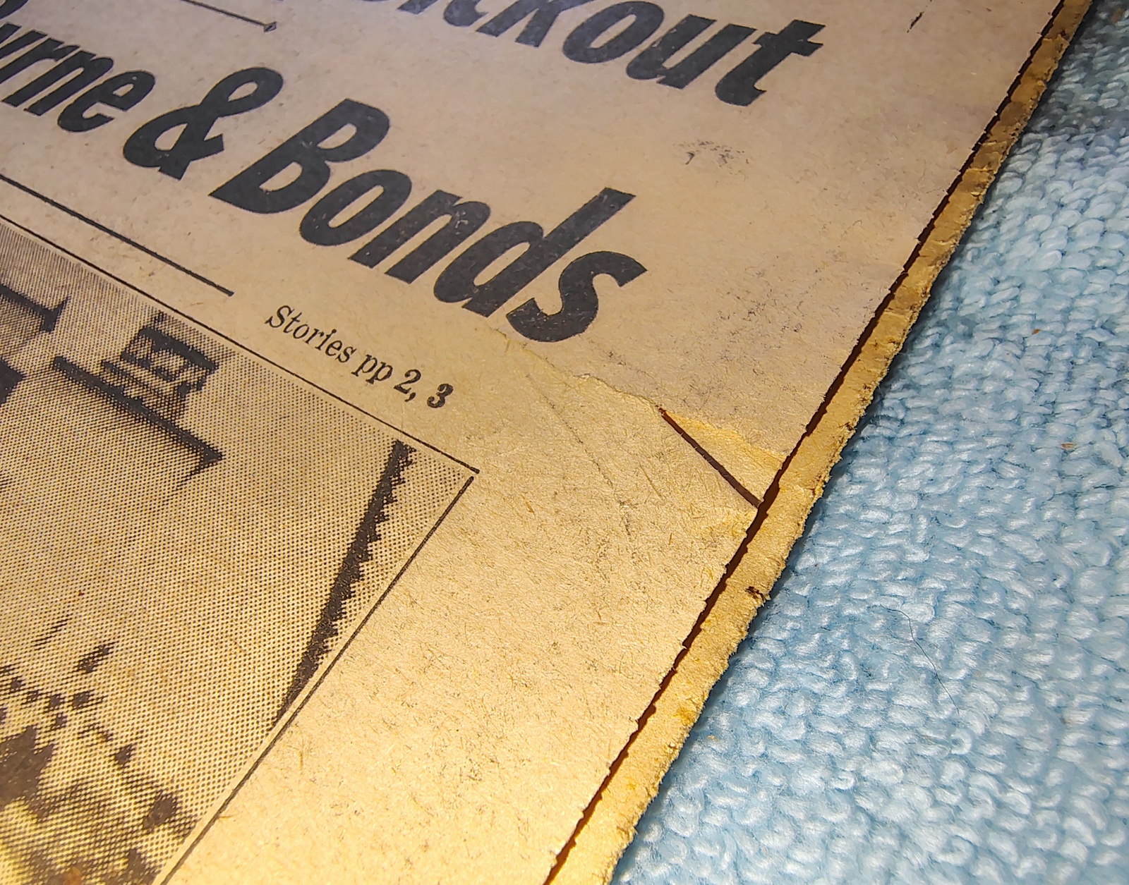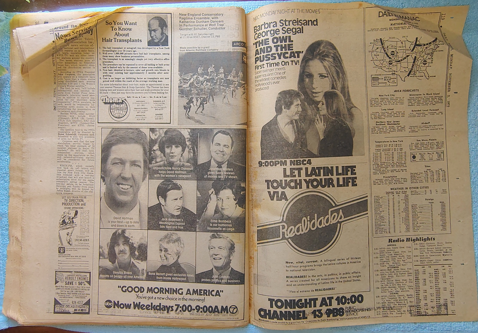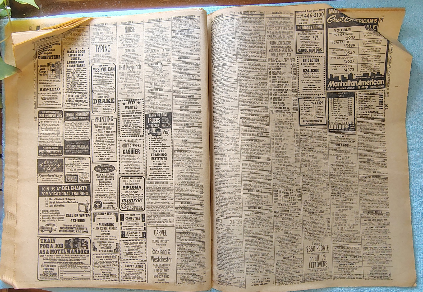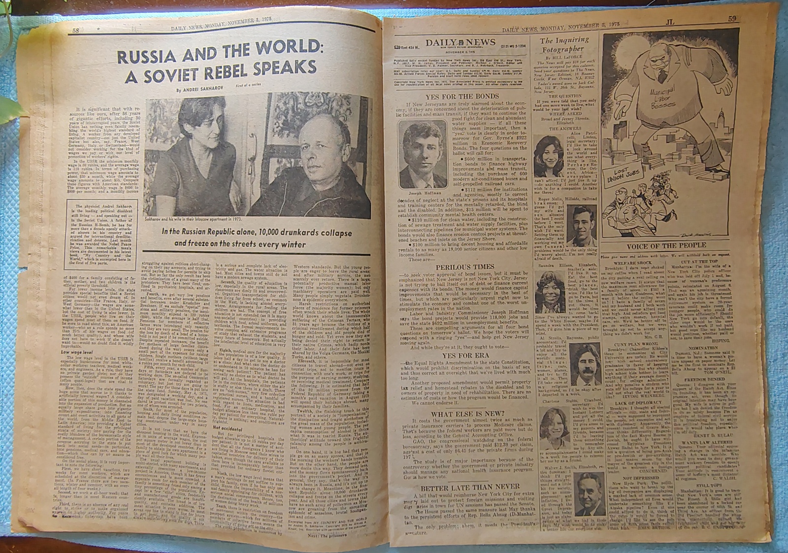 New York Daily News (New Jersey Edition) Monday, November 3, 1975. This old newspaper features on the front page a picture of President Ford shaking hands in Jacksonville Naval Air Station on a trip to meet with Egyptian President Anwar Sadat. The headlines include: ‘Defense Chief Fired By Ford’ ‘Clergy Split on Karen’s Fate’ ‘Nurses End Jersey City Sickout’ ‘Showdown for Byrne & Bonds’ What you see in the pictures is what you get.