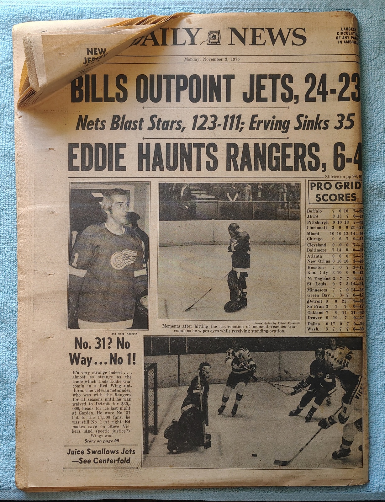 - The back page features pictures of Pro hockey action with Eddie Giacomin.