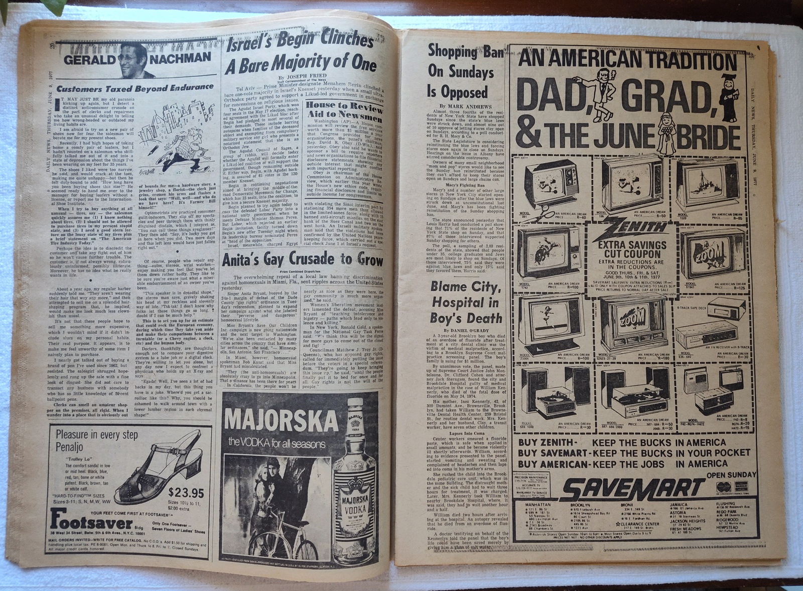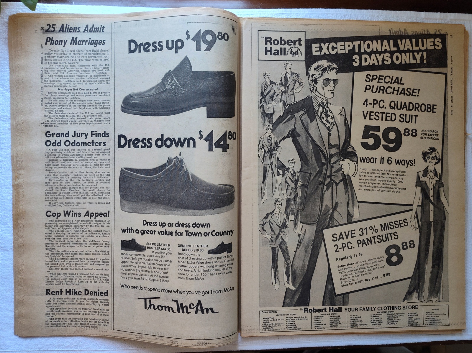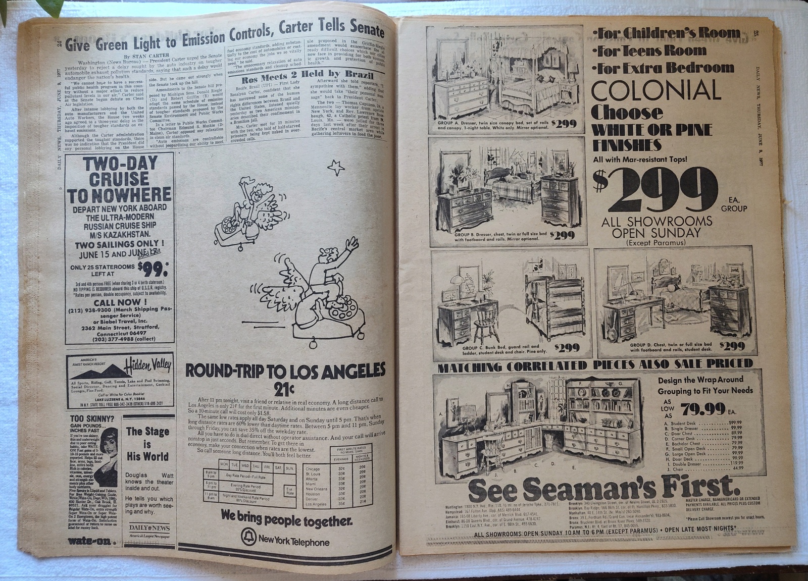 New York Daily News (New Jersey Edition) – Thursday, June 9, 1977. This old newspaper features on the front page a picture of the graduating class from West Point. The headline reads: ‘Gov To Debate Bateman on Tax’ & ‘House Refuses to Ban Concorde’ – LOOK AT THE PICTURES! What you see in the pictures is what you get.