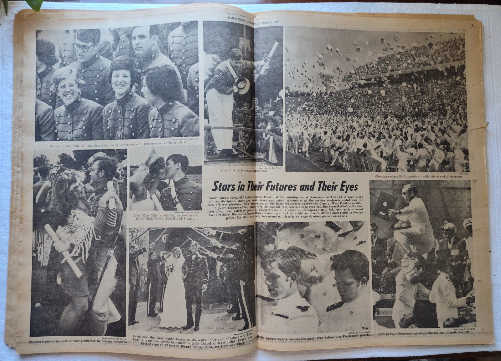 - The centerfold has pictures of some of the first female cadets, and graduations at both West Point and Annapolis
