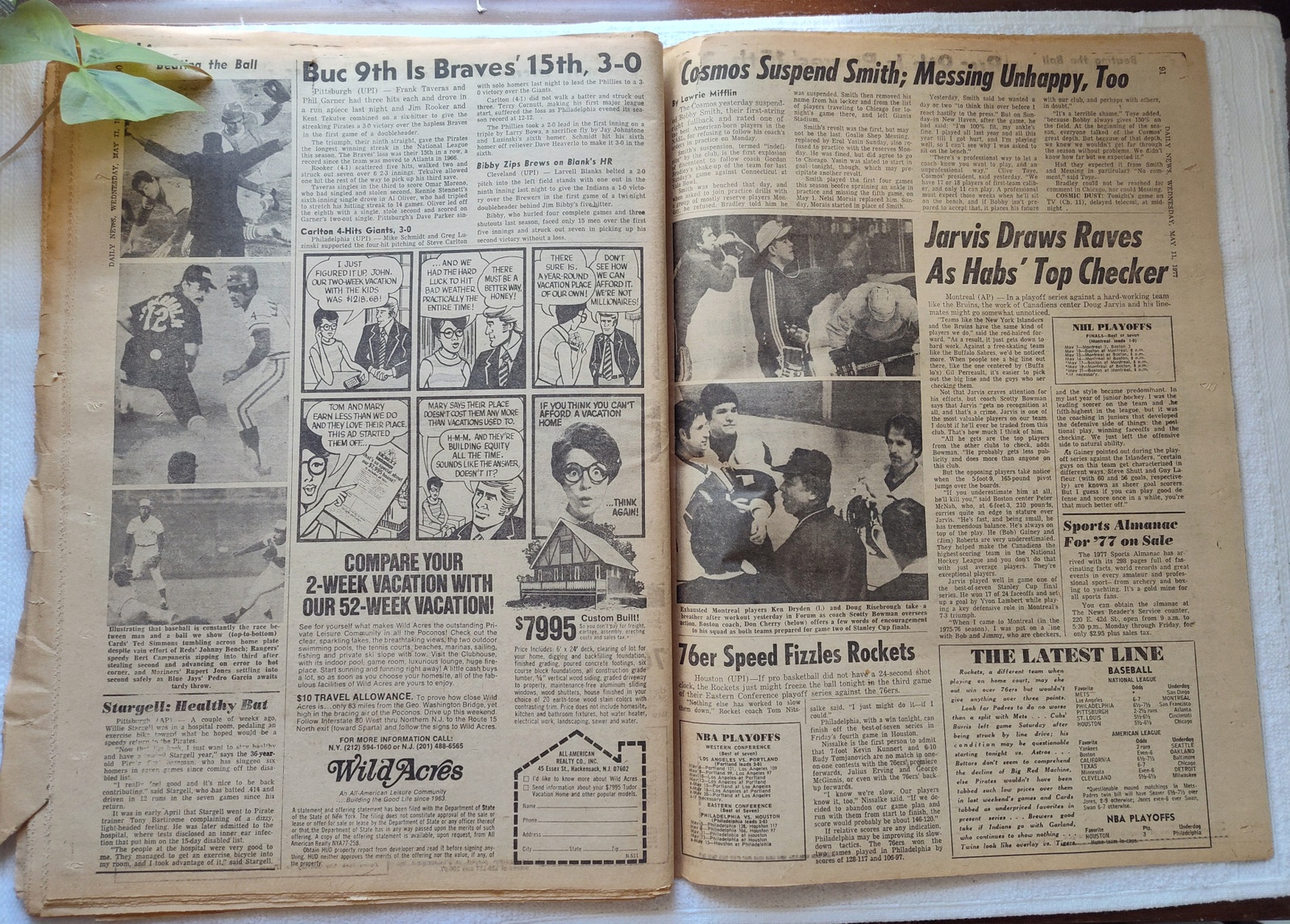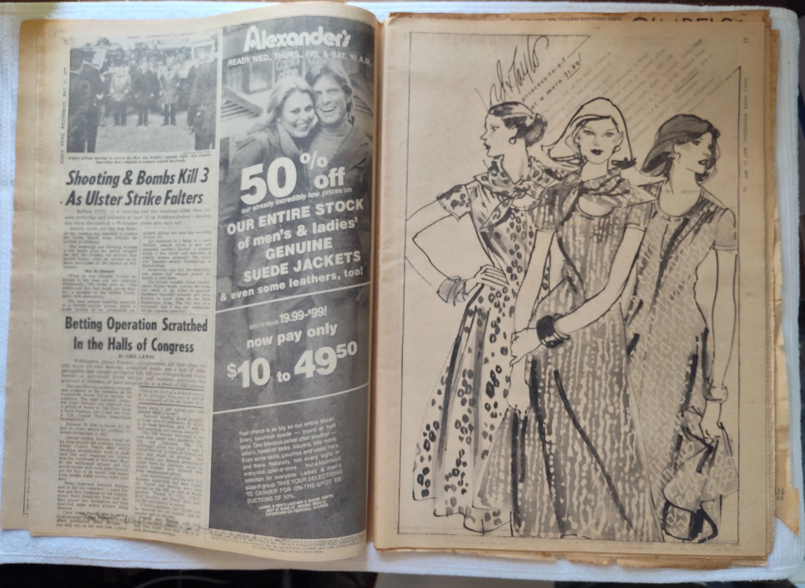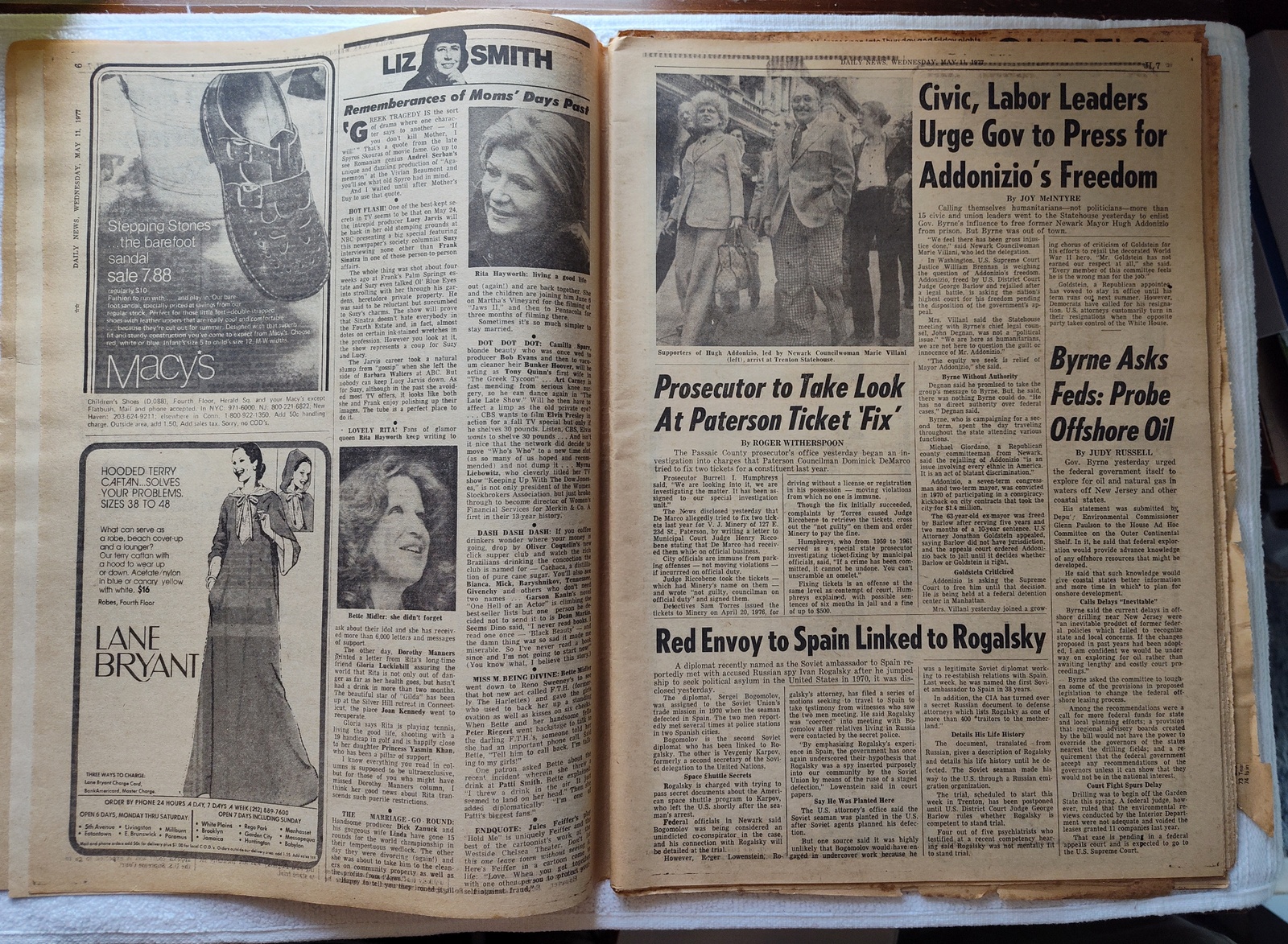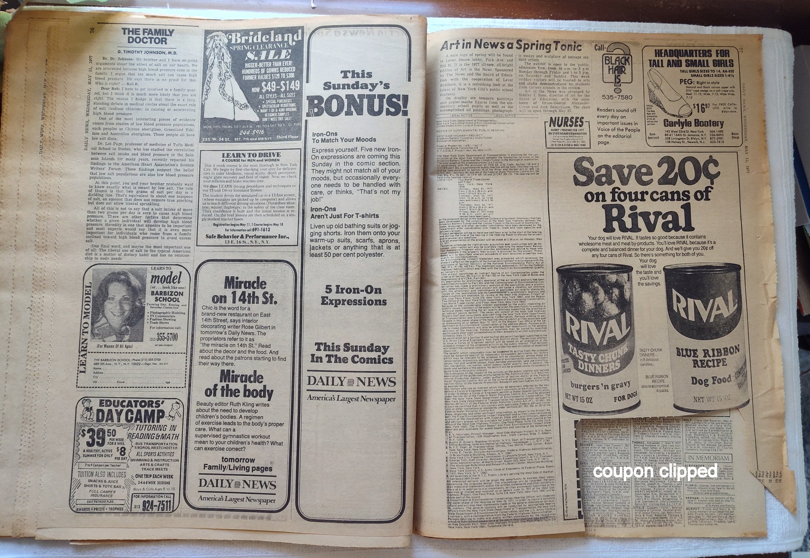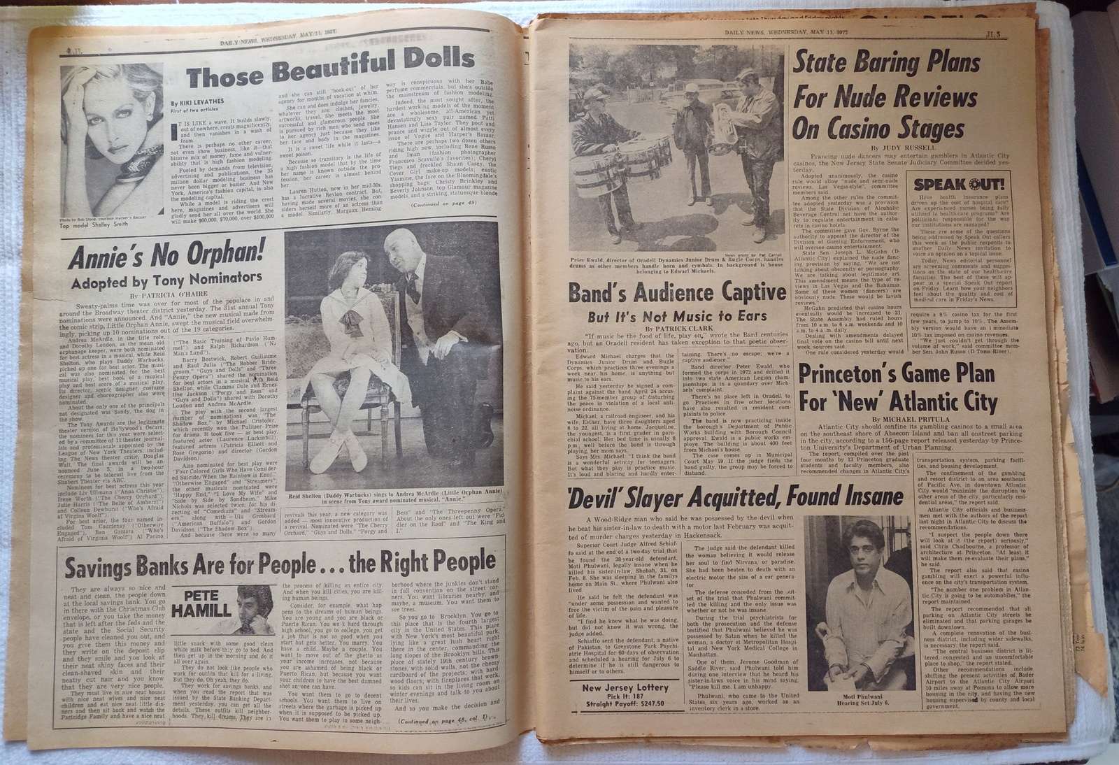New York Daily News (New Jersey Edition) – Wednesday, May 11, 1977. This old newspaper features on the front page a picture of recently deceased movie actress Joan Crawford. There is a small tear on the front near the work ‘Vote’ and minor wear and tear around the edges. Several of the coupons have been clipped – LOOK AT THE PICTURES! What you see in the pictures is what you get.
