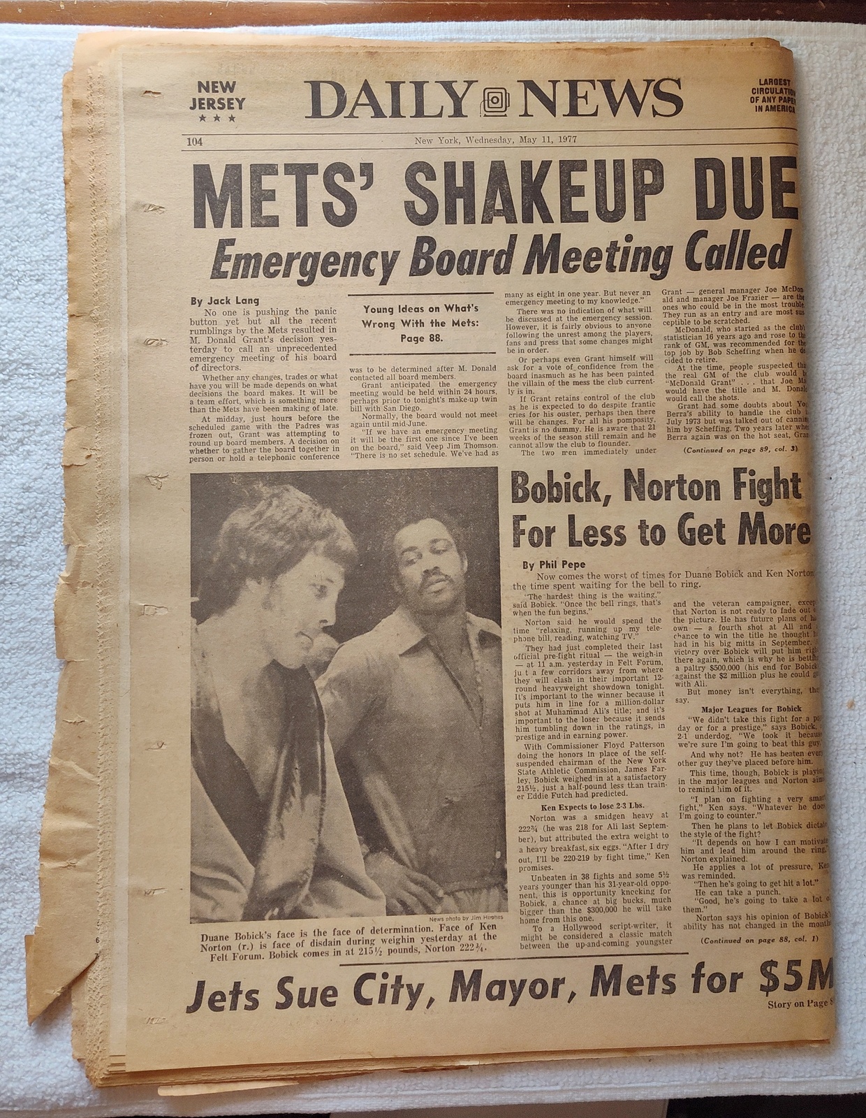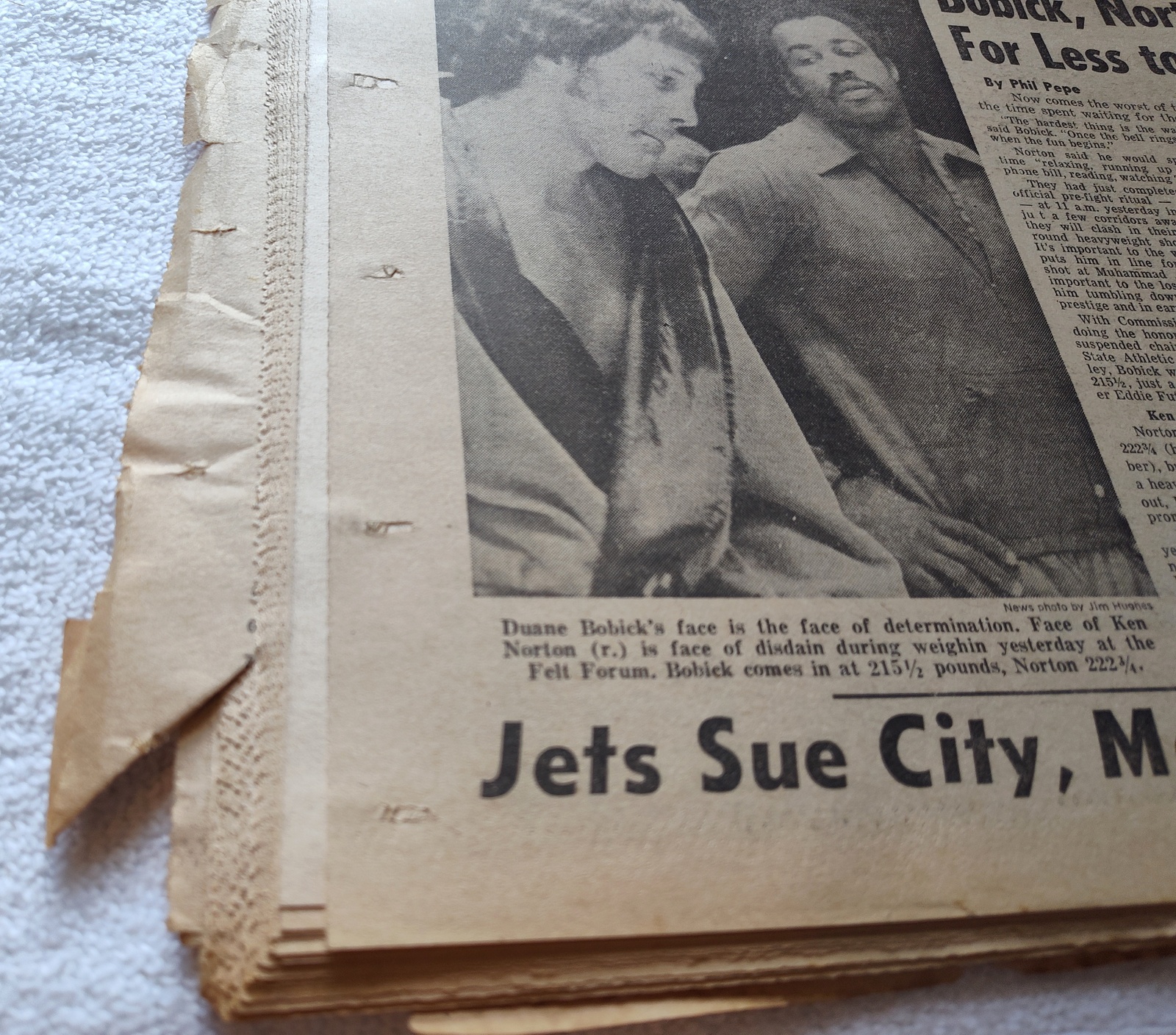- The back page has a picture of boxers Ken Norton and Duane Bobick.