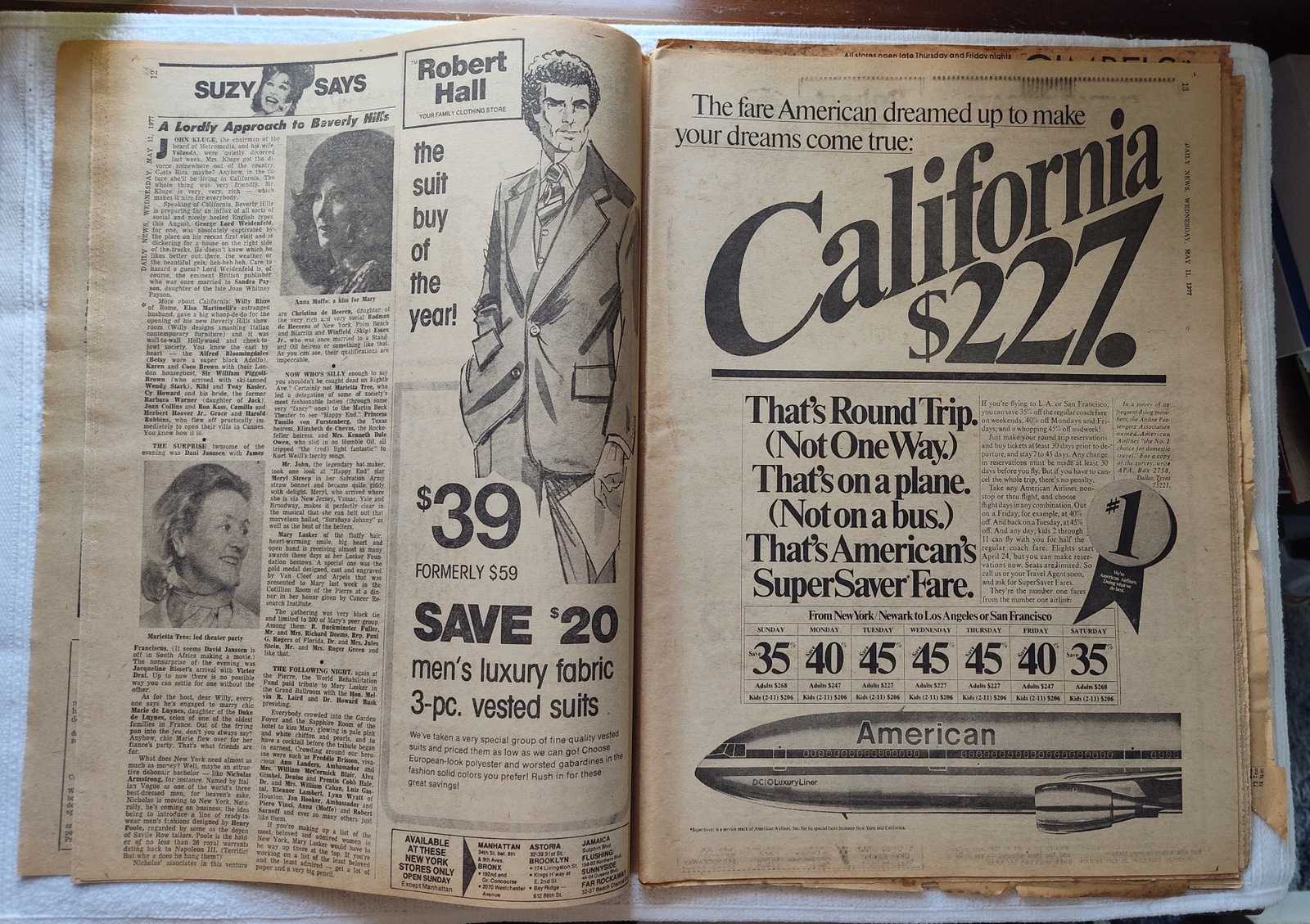 - A full page ad for American Airlines’ DC10 Luxury Liner service from New York to California
