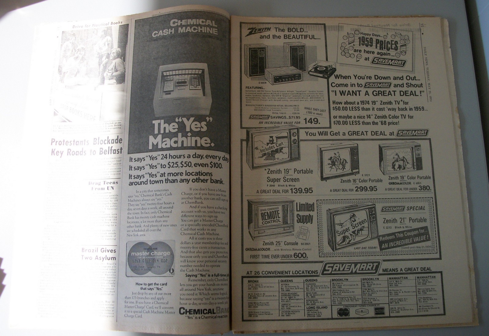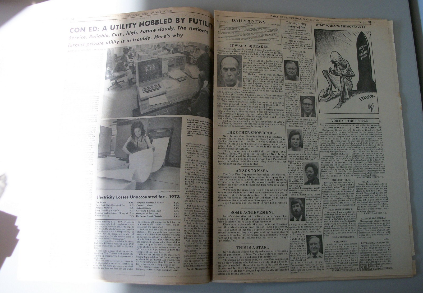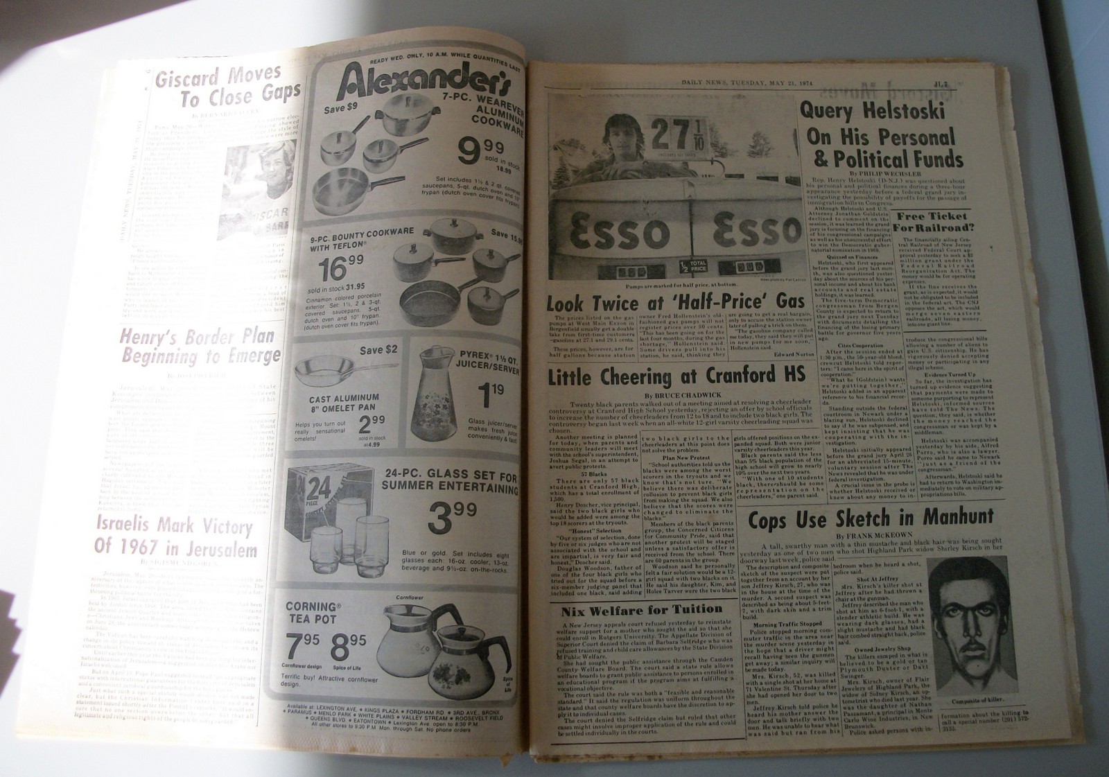 New York (New Jersey edition) Daily News – Tuesday May 21, 1974 Headlines include: ‘Patty, Give Up’ Hearsts Plead, FBI, Cops Press Hunt In Hollywood. What you see in the pictures is what you get.