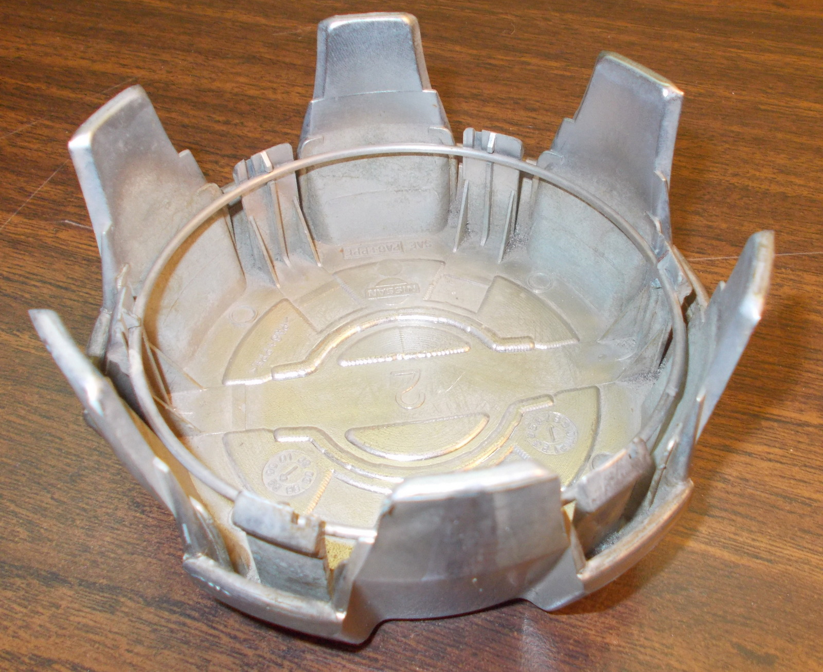 Up for sale is a hub cap off of a Nissan vehicle – we’re not sure what model, but based on searches for the part number on the internet, it looks like it fits 1999-2001 Pathfinder vehicles with 16″ wheels and that these also were manufactured in grey – this one is chrome. Please cross reference the part number with Nissan for compatibility with your vehicle BEFORE you purchase this one! The date code on the inside seems to indicate July of 1999. It measures about 4 1/2 inches in diameter and includes the retaining ring. This has some scratching and wear – please keep this in mind when considering your purchase. Also remember that this is part is over 20 years old! We hope someone out there on the internet can use it. Numbers printed on the bottom include: