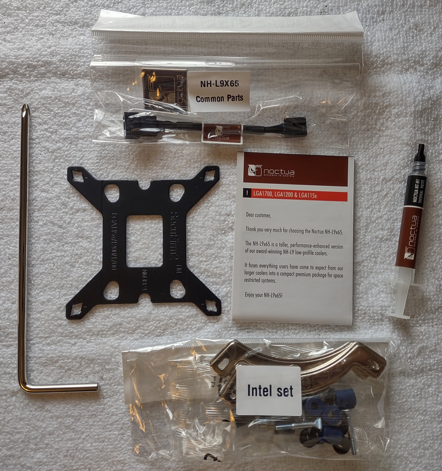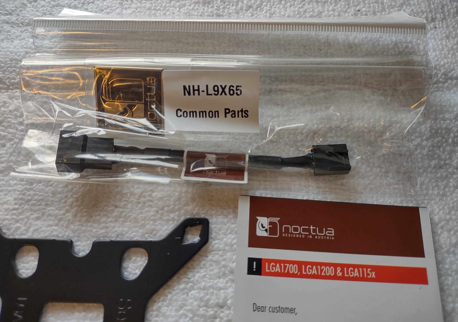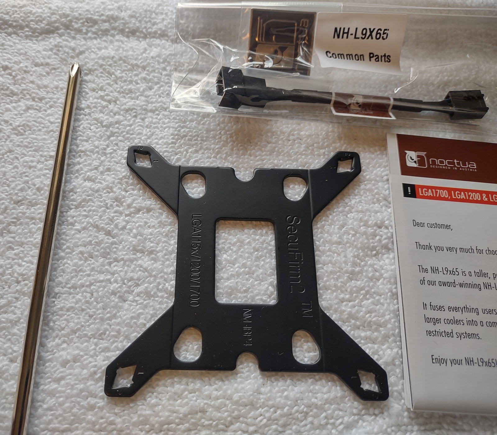 Up for sale are the parts for using a Noctua NH-L9x65 CPU Cooler with an Intel processor. We used the cooler for an AMD system and have these parts left over – hope someone out there can put ’em to use! These are for attaching the cooler to an Intel socket LGA1700 / LGA1200 / LGA115x / LGA20xx These parts are in unused condition and are left over from a system build.