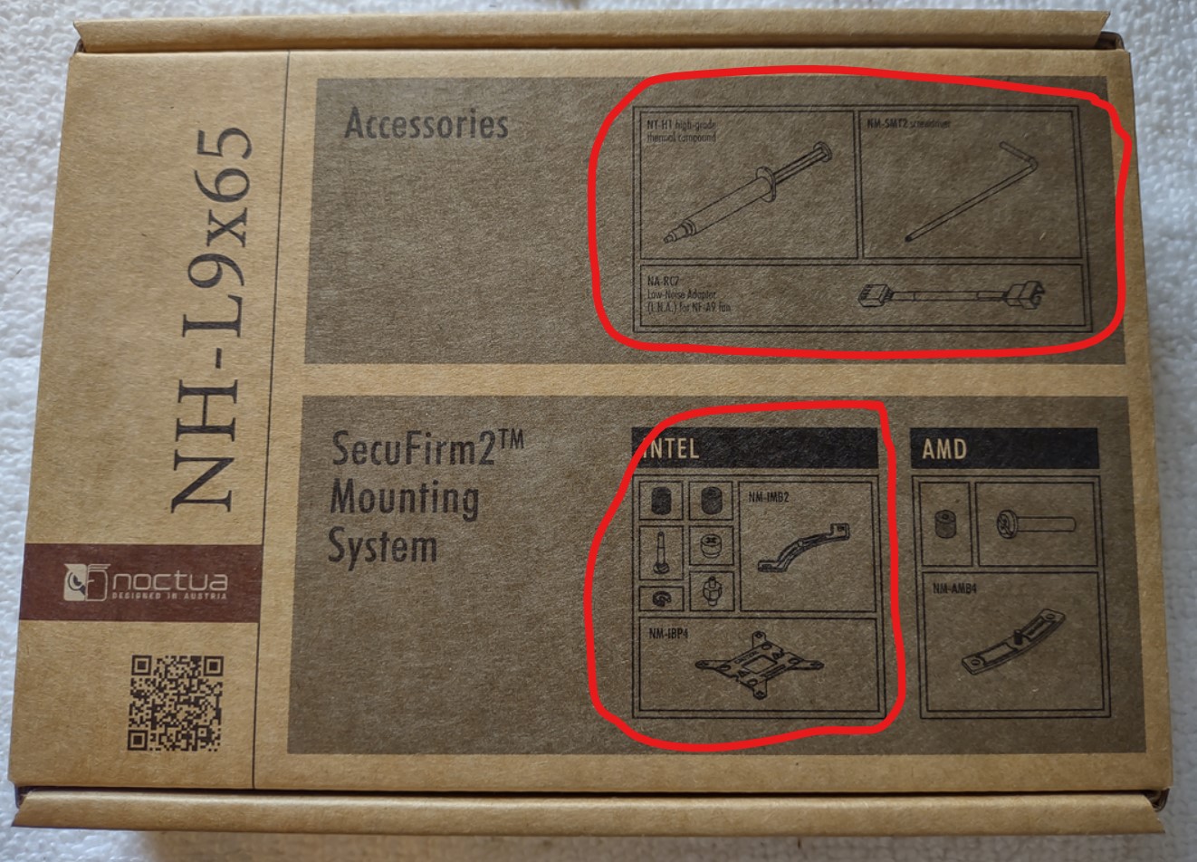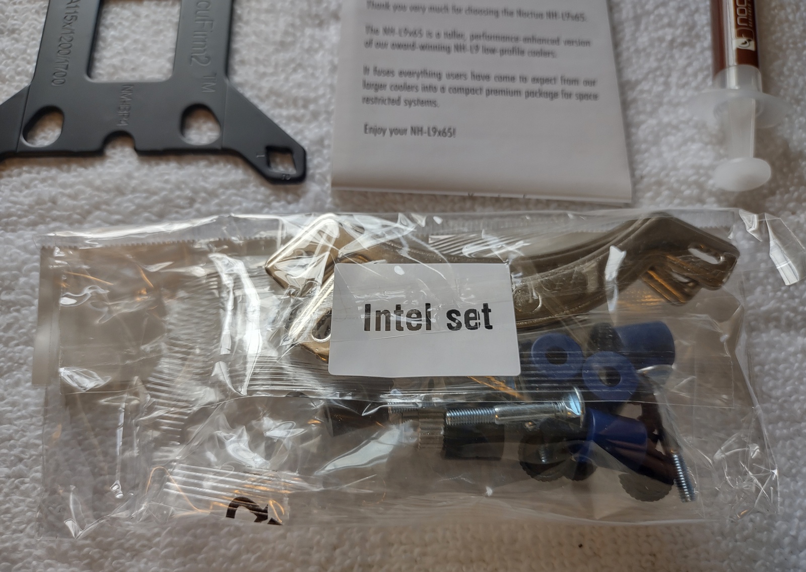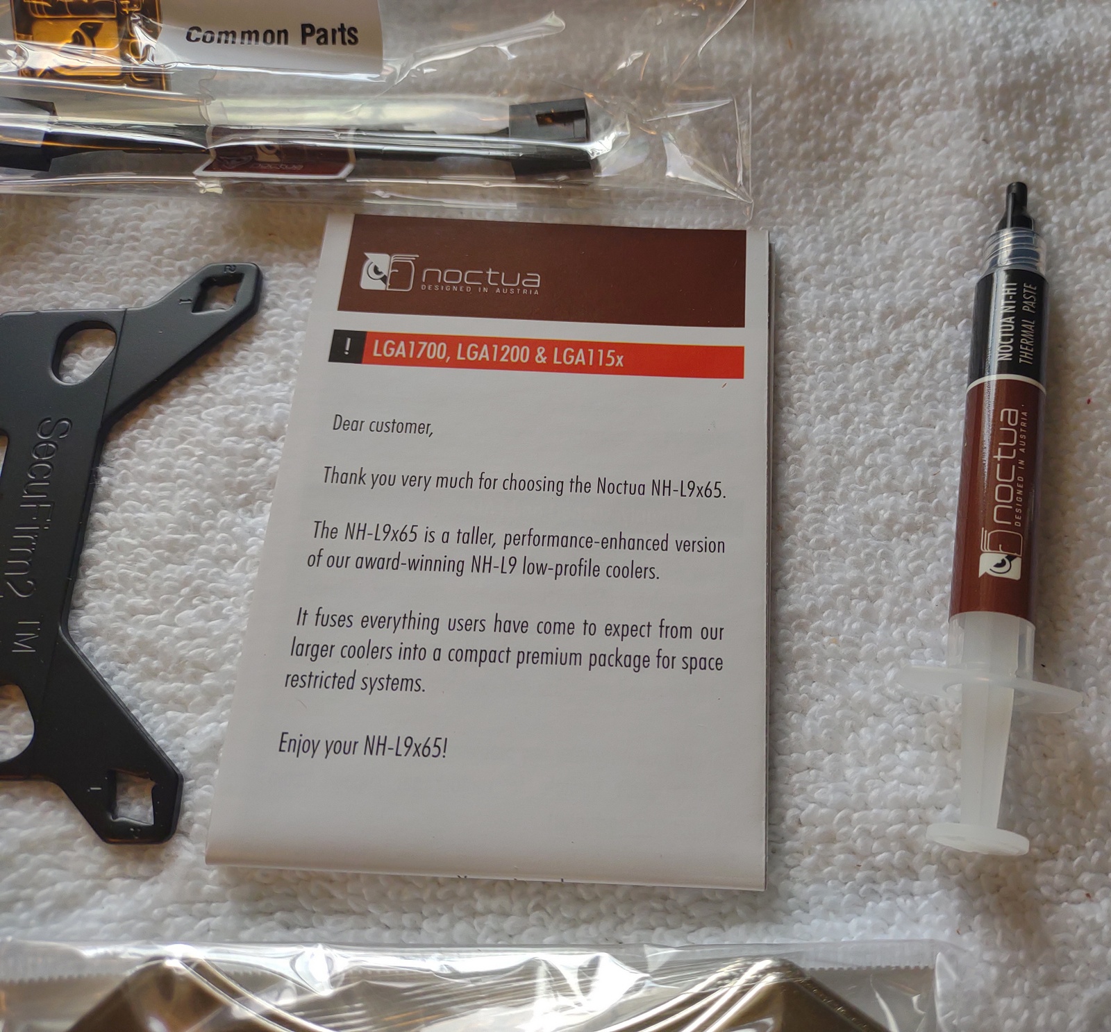 Up for sale are the parts for using a Noctua NH-L9x65 CPU Cooler with an Intel processor. We used the cooler for an AMD system and have these parts left over – hope someone out there can put ’em to use! These are for attaching the cooler to an Intel socket LGA1700 / LGA1200 / LGA115x / LGA20xx These parts are in unused condition and are left over from a system build.