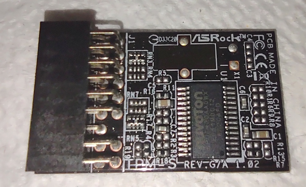 Up for sale is a new, old stock TPM-S module (Version 1.2) for some ASRock motherboards. We purchased this several years ago, put it on the shelf and never used it. Hope someone out there can put it to use!