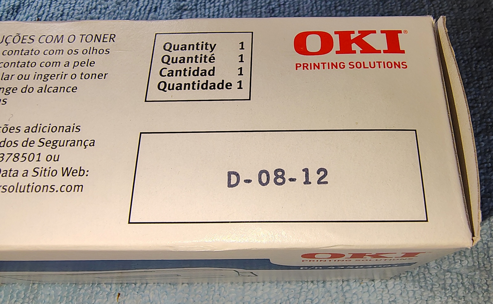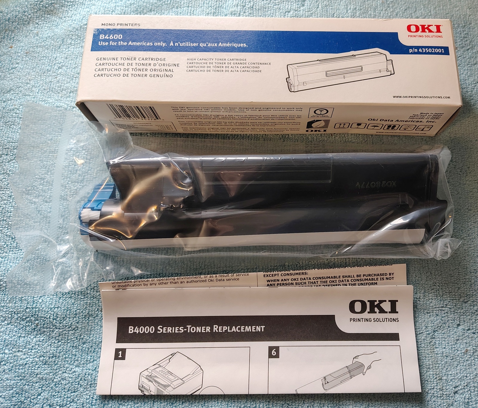 Up for sale is a new, old stock genuine Oki (Okidata) toner for B4600. We hope someone out there on the interwebs can put it to use. It is left over from printers past. What you see in the pictures is what you get. Made in Japan. p/n: 43502001. D-08-12 is printed on the box – we think this is the expiration date – August of 2012, but we’re not for sure. Barcode: 051851353784