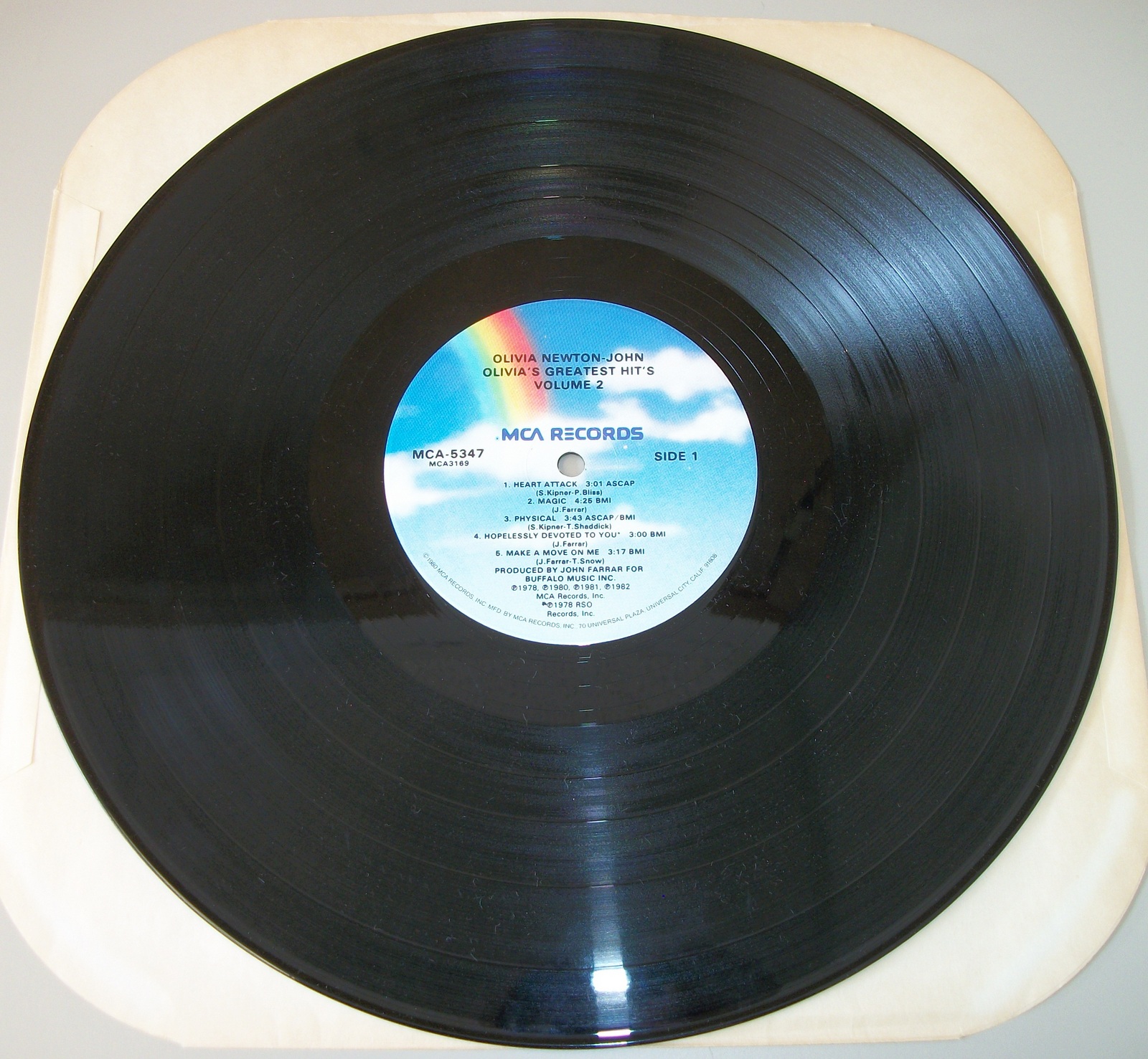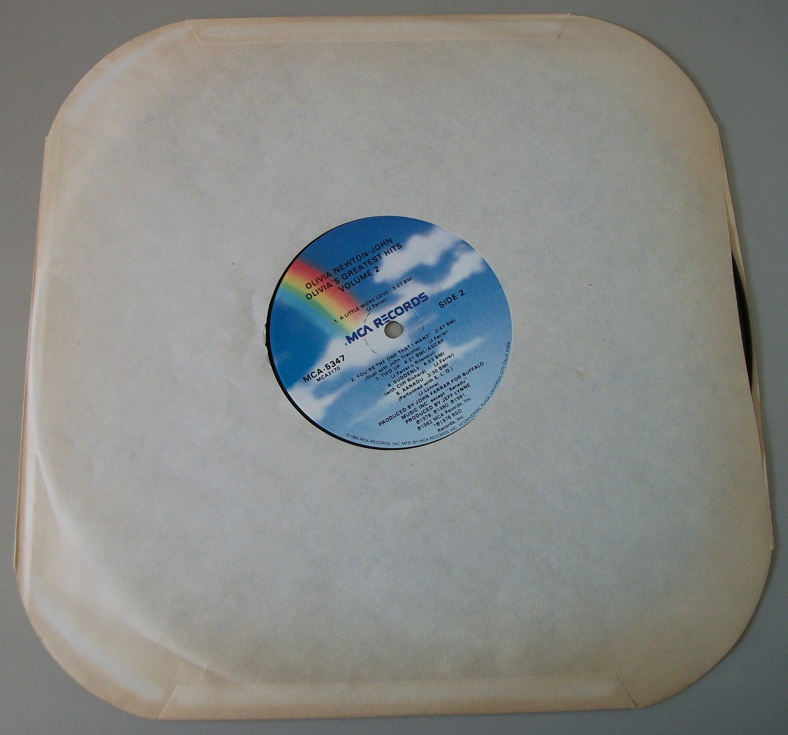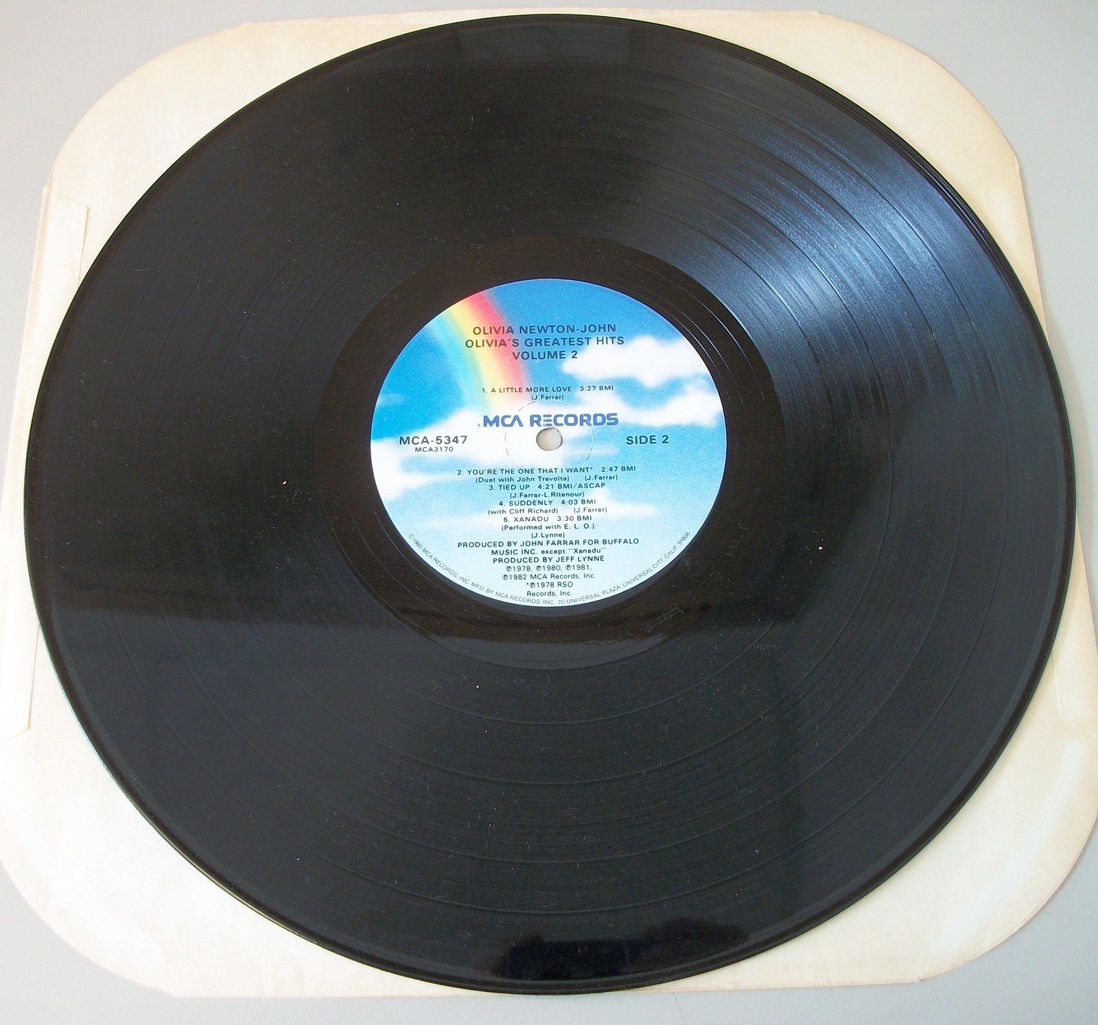 Up for sale is Olivia Newton-John’s album Olivia’s Greatest Hits Vol 2 on vinyl. LOOK AT THE PICTURES! Used condition, some wear around the edges and light creases. The insert is lightly wrinkled and discolored a little bit, but it is in overall pretty good condition for an almost 40 year old record – see pictures!