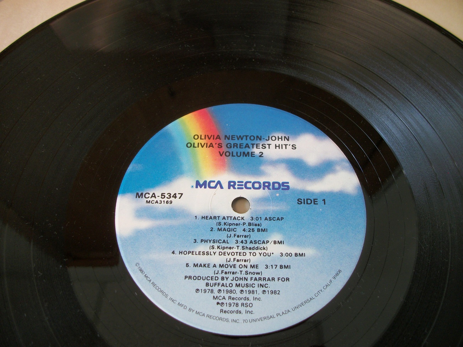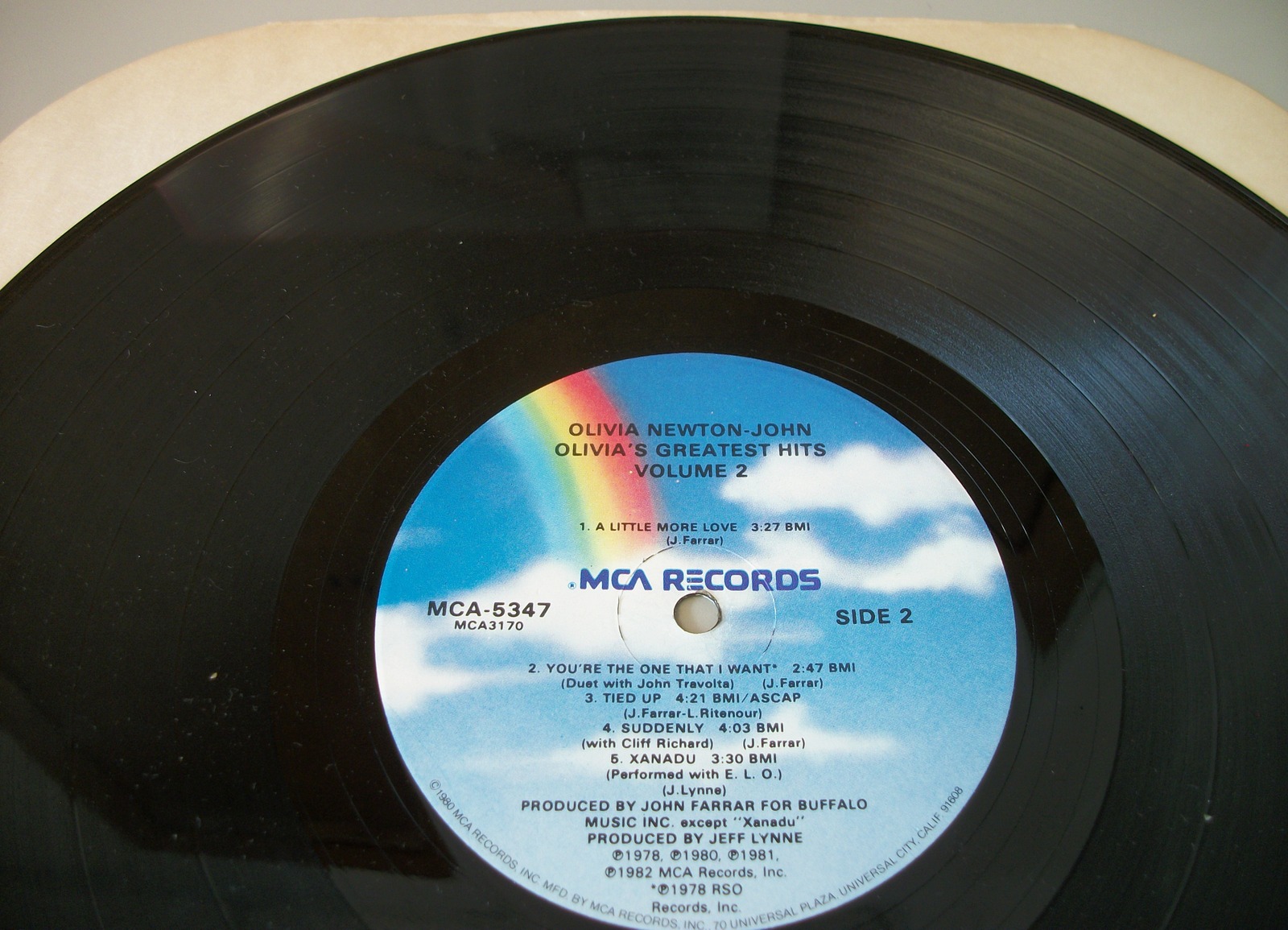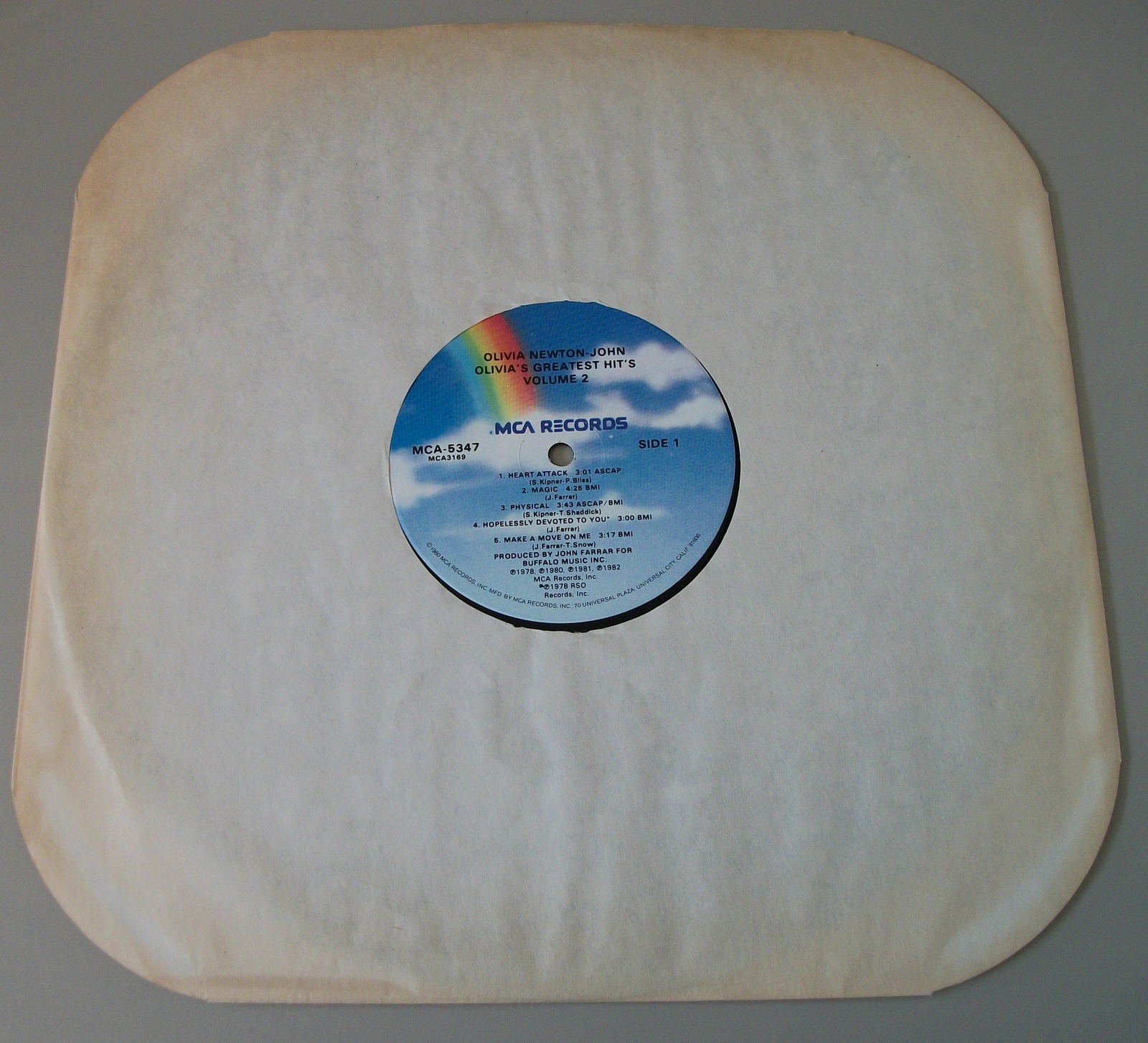 Up for sale is Olivia Newton-John’s album Olivia’s Greatest Hits Vol 2 on vinyl. LOOK AT THE PICTURES! Used condition, some wear around the edges and light creases. The insert is lightly wrinkled and discolored a little bit, but it is in overall pretty good condition for an almost 40 year old record – see pictures!