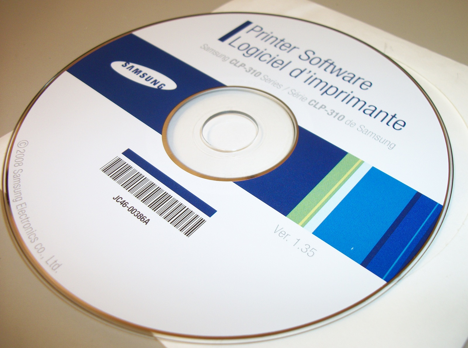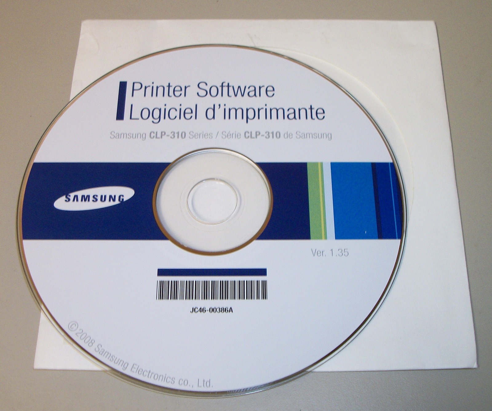 Up for sale is the original driver CD which came with a Samsung CLP-310 Series Color Laser Printer from 2009. You get the CD: V. 1.35, JC46-00386A.