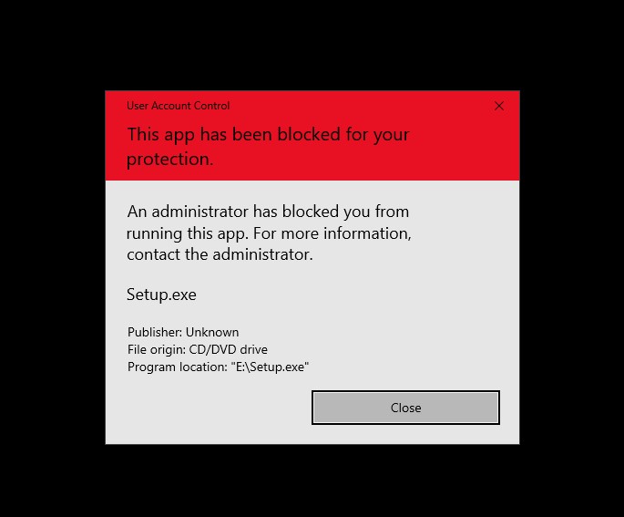 This includes documentation and driver software for Samsung CLP-310 Series Color Laser Printers from January 2009. DO NOT EXPECT THIS TO WORK WITH A MODERN OPERATING SYSTEM! We tried to run the ‘Setup.exe’ file in Windows 10 and it would not run by clicking on it through Windows File Explorer – see the third picture with the error. We were able to work around this by running ‘cmd.exe’ as administrator and launching the ‘Setup.exe’ from the root of the CD from the administrator’s command prompt. We did not try to install the software.