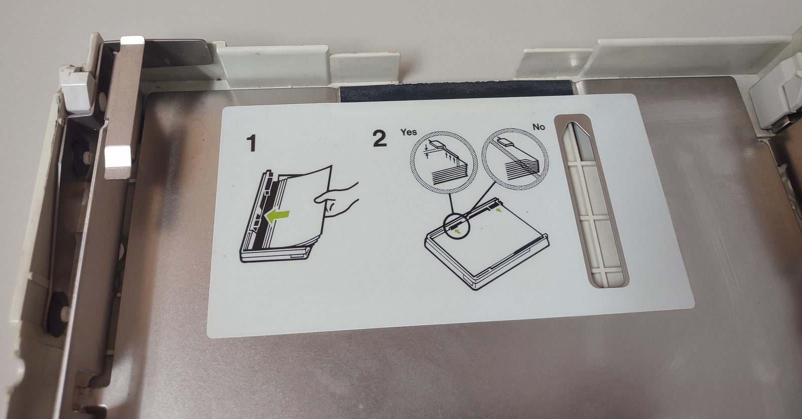 This tray is in pretty good shape for decades old – it has some yellowing of the plastic and some scratches in the manual feed (plastic cover) – LOOK AT THE PICTURES!