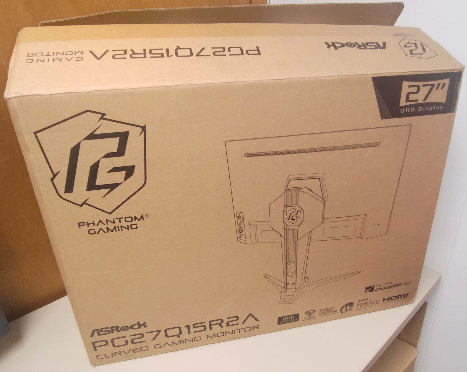 You are purchasing one original box and packing for a black ASRock PG27Q15R2A computer monitor only.
