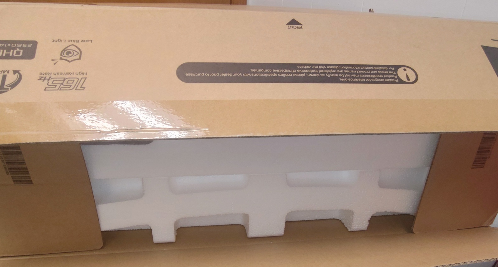 Up for sale is the original box and foam packing which came with a black ASRock PG27Q15R2A Curved Gaming Computer Monitor. It measures just about 28 inches wide by about 11 inches deep by about 20 inches tall. Even though this is fairly light weight ~ 7#, shipping is expensive because it is bulky and charged by dimensional weight. You may pick this up locally and save on the shipping! The original shipping labels have been removed and there are a couple of minor defects – LOOK AT THE PICTURES!.