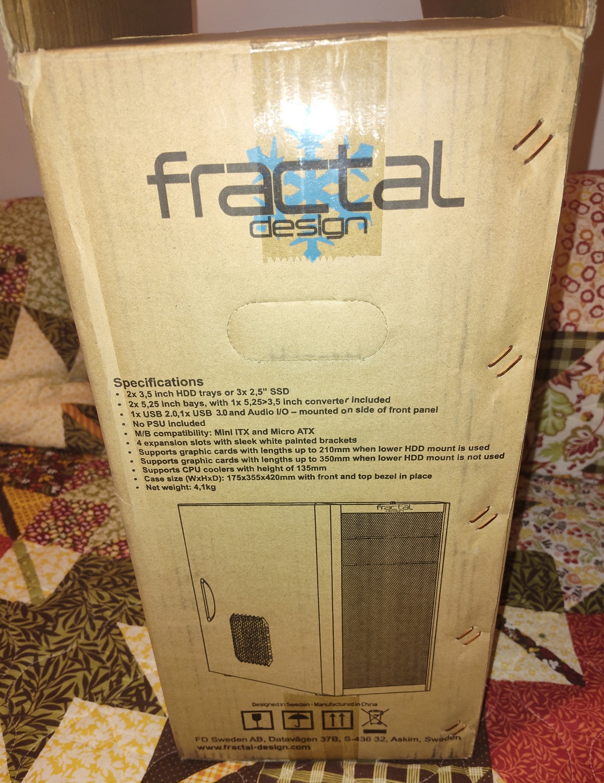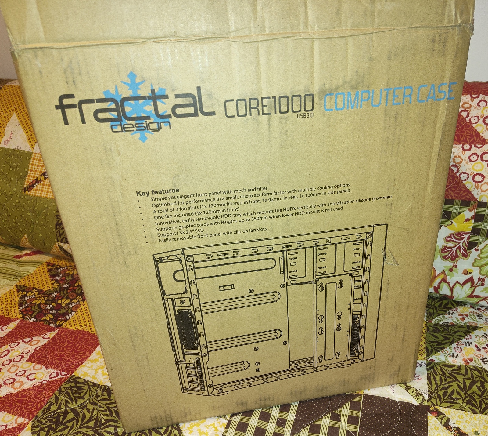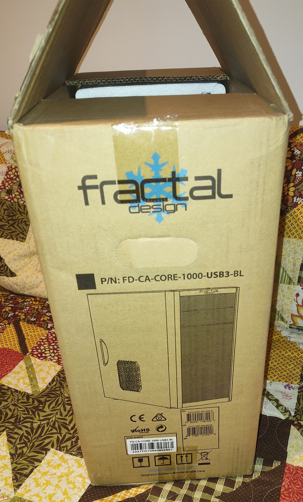 The box was born at the Guangzhoushibaiyunqukubangzhipinchang box factory in China – from there, it made it’s way to the Fractal Design factory where it was enlisted to protect a new Fractal Design Core 1000 case on its way to the United States. After being passed through the gentle caresses of the United Parcel Service, it’s first job was fulfilled – safely transporting the case from China to the United States. Now, it’s looking for further employment transporting your Core 1000 case somewhere!