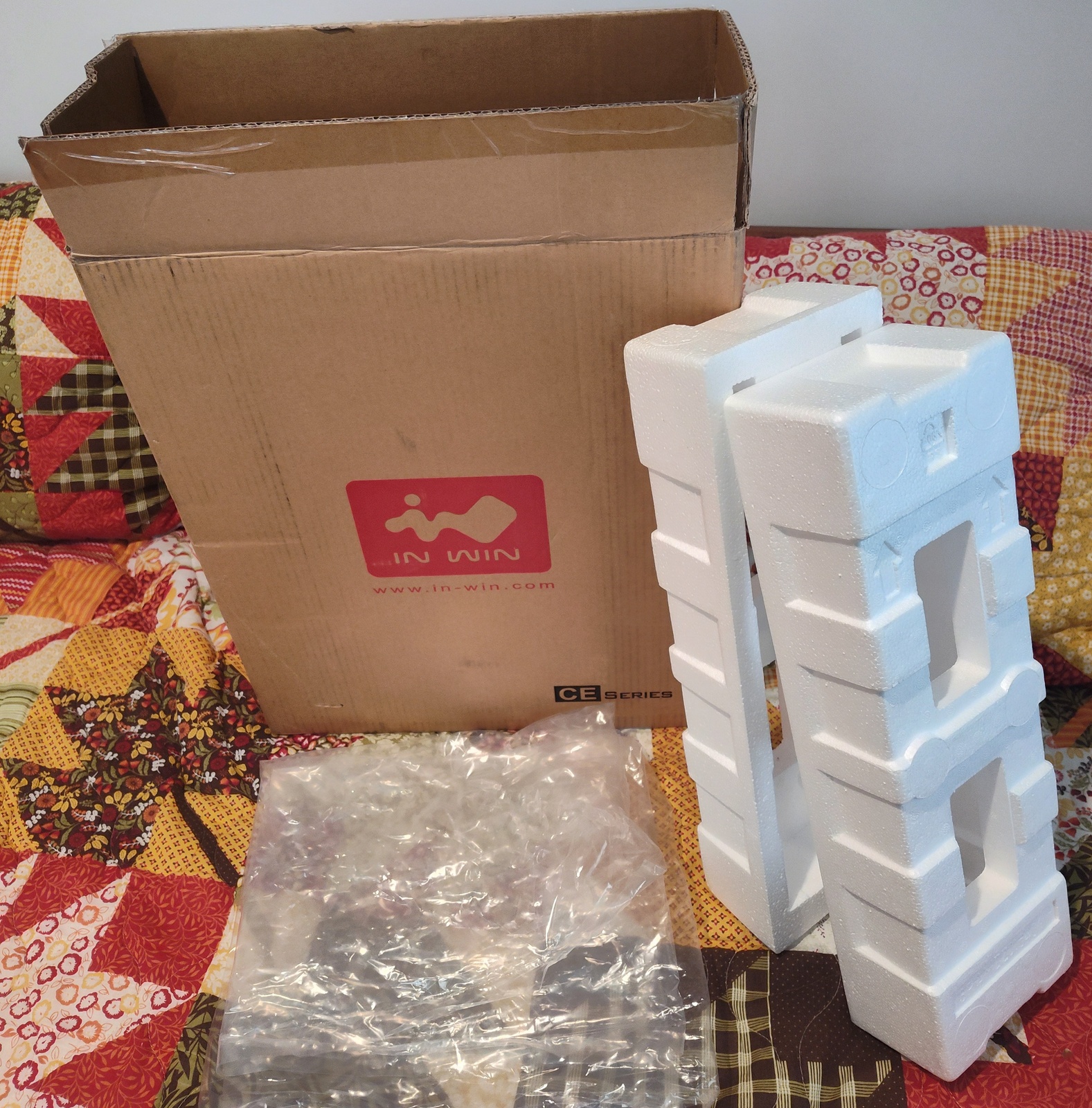 Up for sale is the original box and foam packing which came with a black In Win CE052.FH300TB3 desktop PC case. It measures just about 19 inches tall by about 6 inches wide by about 16 inches long. Even though this is fairly light weight ~ 3#, shipping is expensive because it is bulky and charged by dimensional weight. You may pick this up locally and save on the shipping! The original shipping labels have been removed and there are a couple of minor defects – LOOK AT THE PICTURES!.