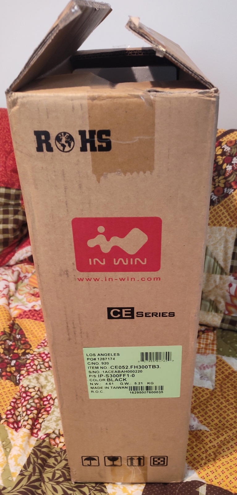 The box was born in Taiwan at the Ming Fang Paper & Carton Co. Ltd. factory – from there, it made it’s way to the In Win factory where it was enlisted to protect a new CE052.FH300TB3 case on its way to the United States where it apparently arrived at Los Angeles, CA. After being passed through the gentle caresses of the United Parcel Service, it’s first job was fulfilled – safely transporting the case from China to the United States. Now, it’s looking for further employment transporting your CE052.FH300TB3 case somewhere!