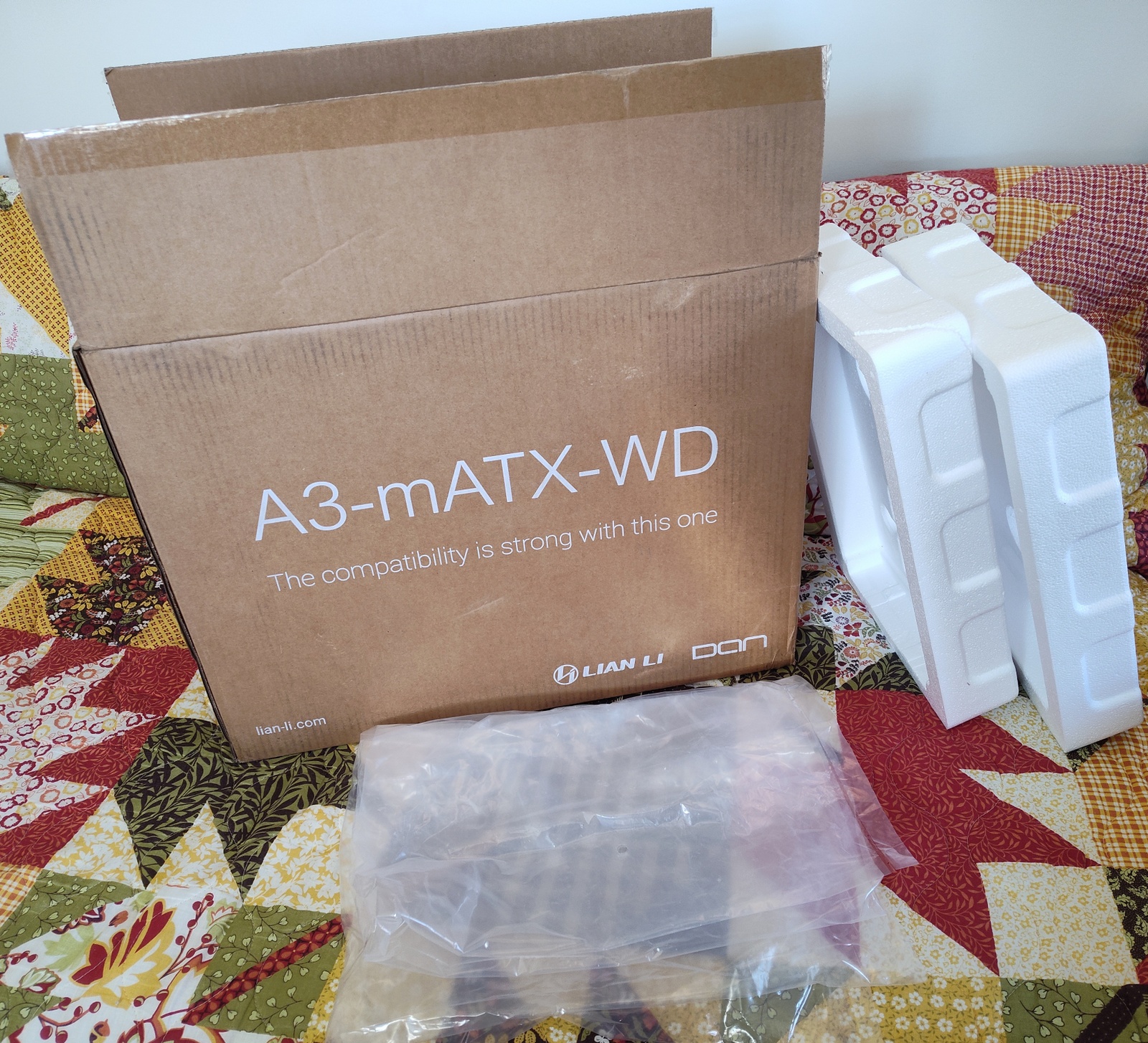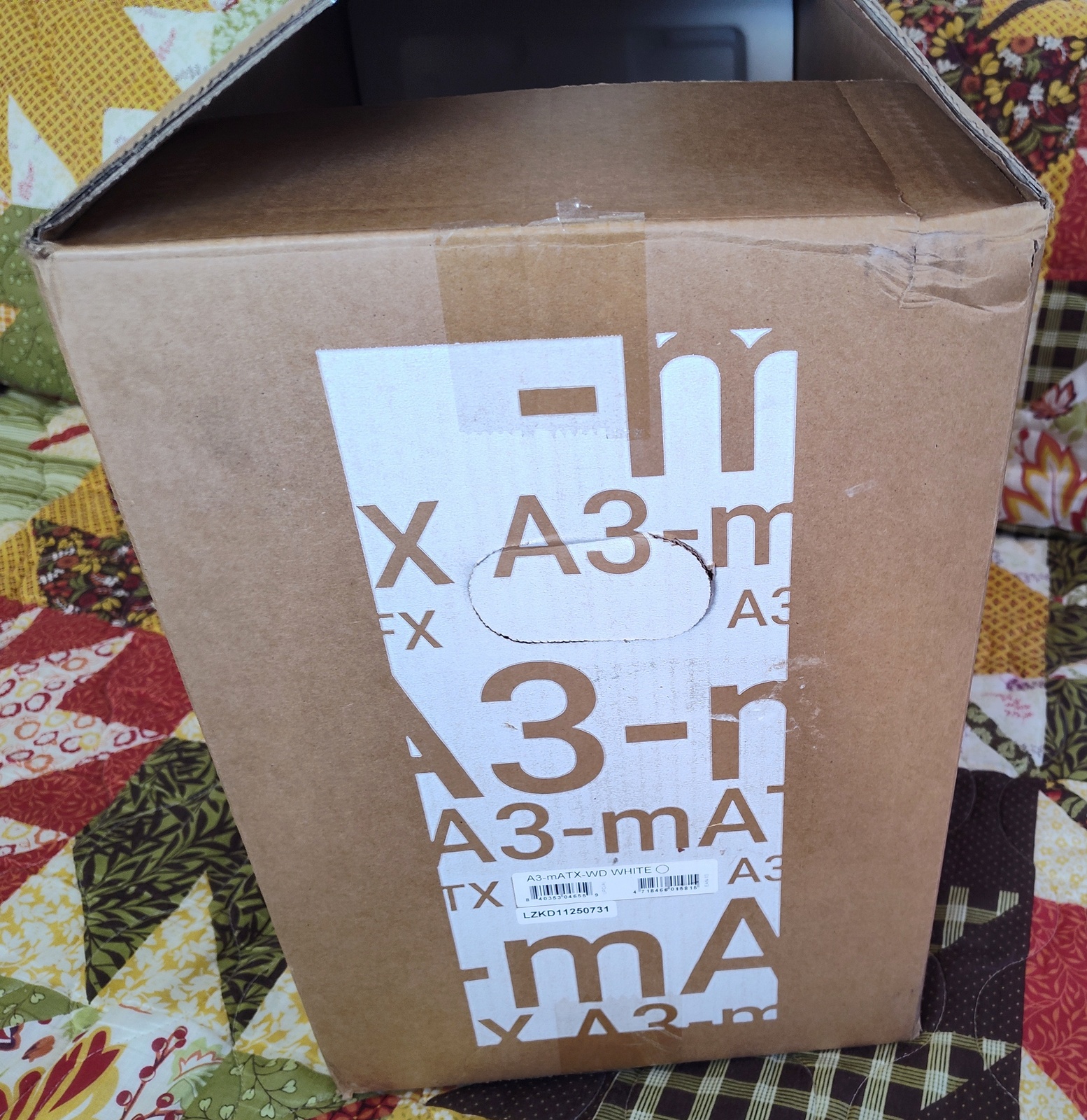The box was born somewhere in China – from there, it was enlisted to protect a new Lian Li A3-mATX-WD WHITE case on its way to the United States. After being passed through the gentle caresses of the United Parcel Service, it’s first job was fulfilled – safely transporting the case from China to the United States. Now, it’s looking for further employment transporting your A3-mATX-WD WHITE case somewhere!