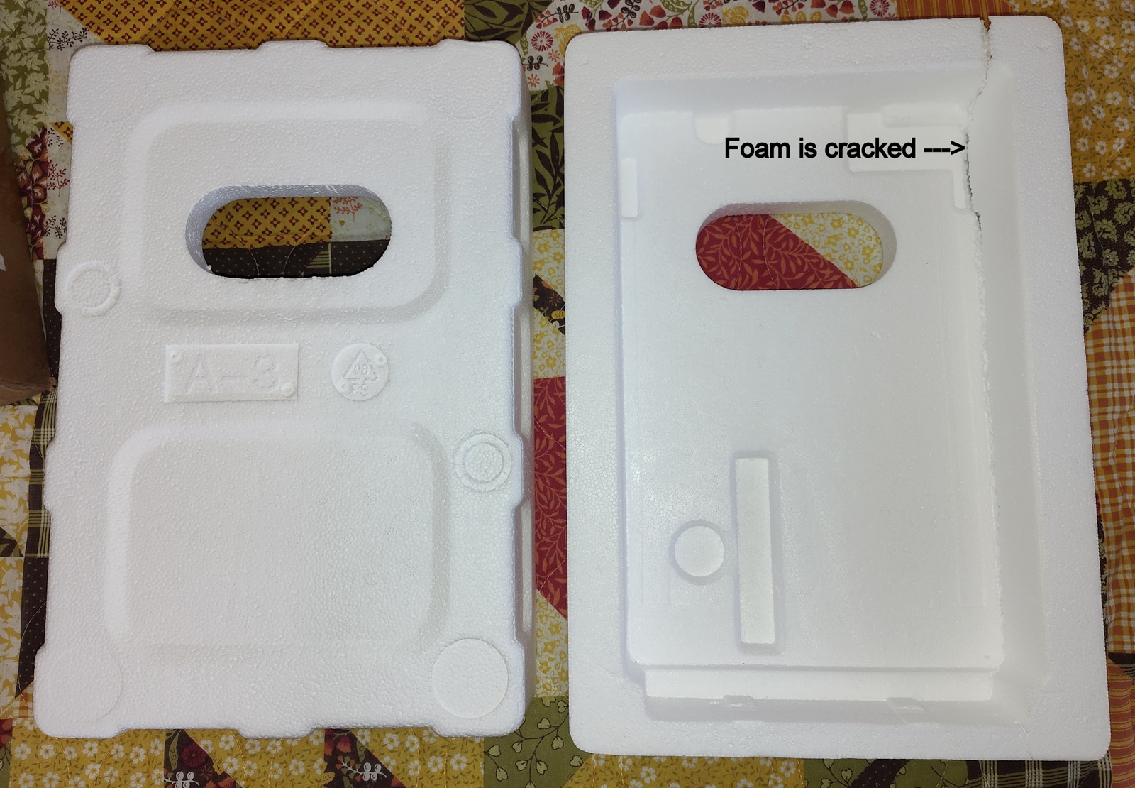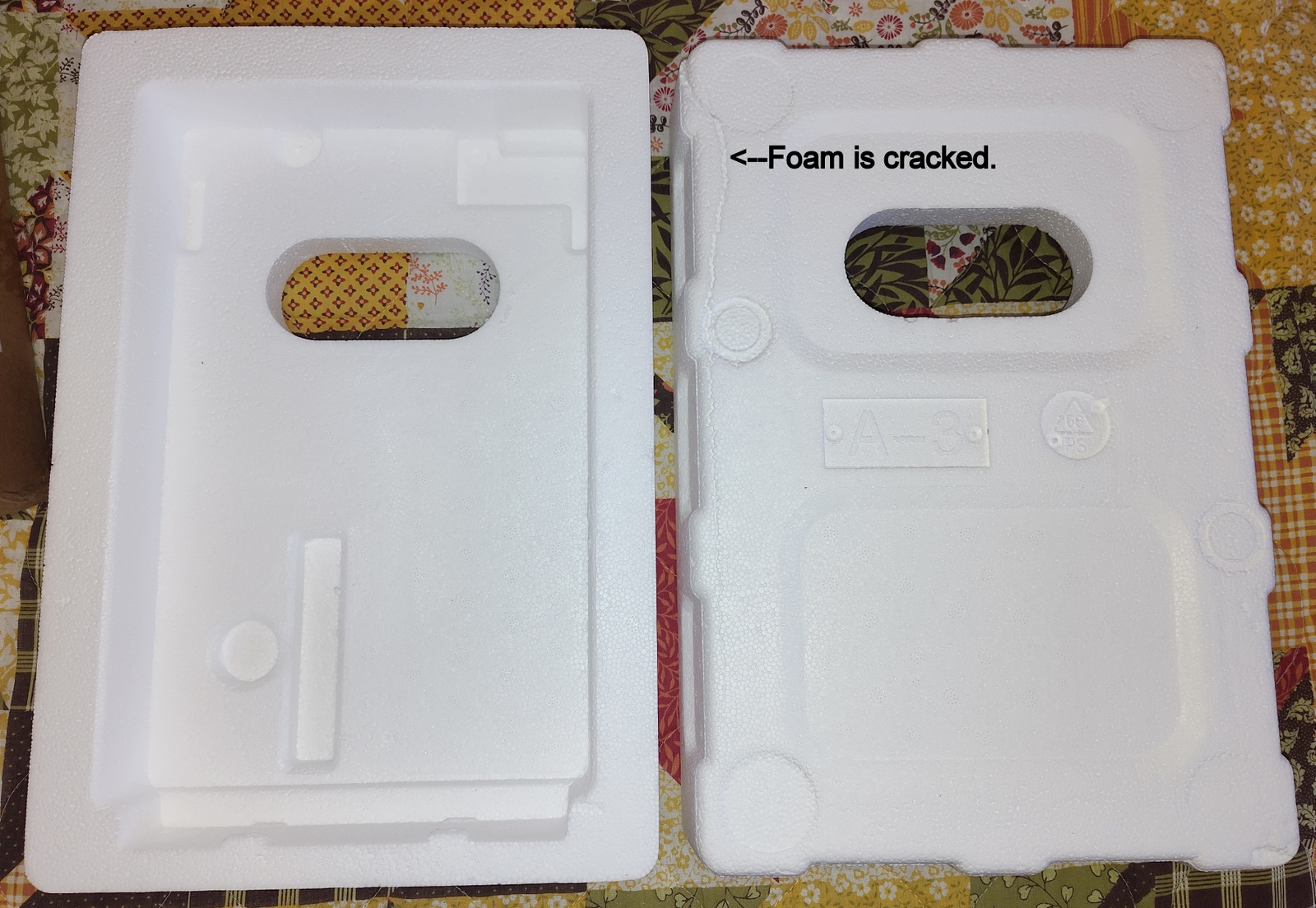 - One piece of foam is cracked – SEE PICTURES!