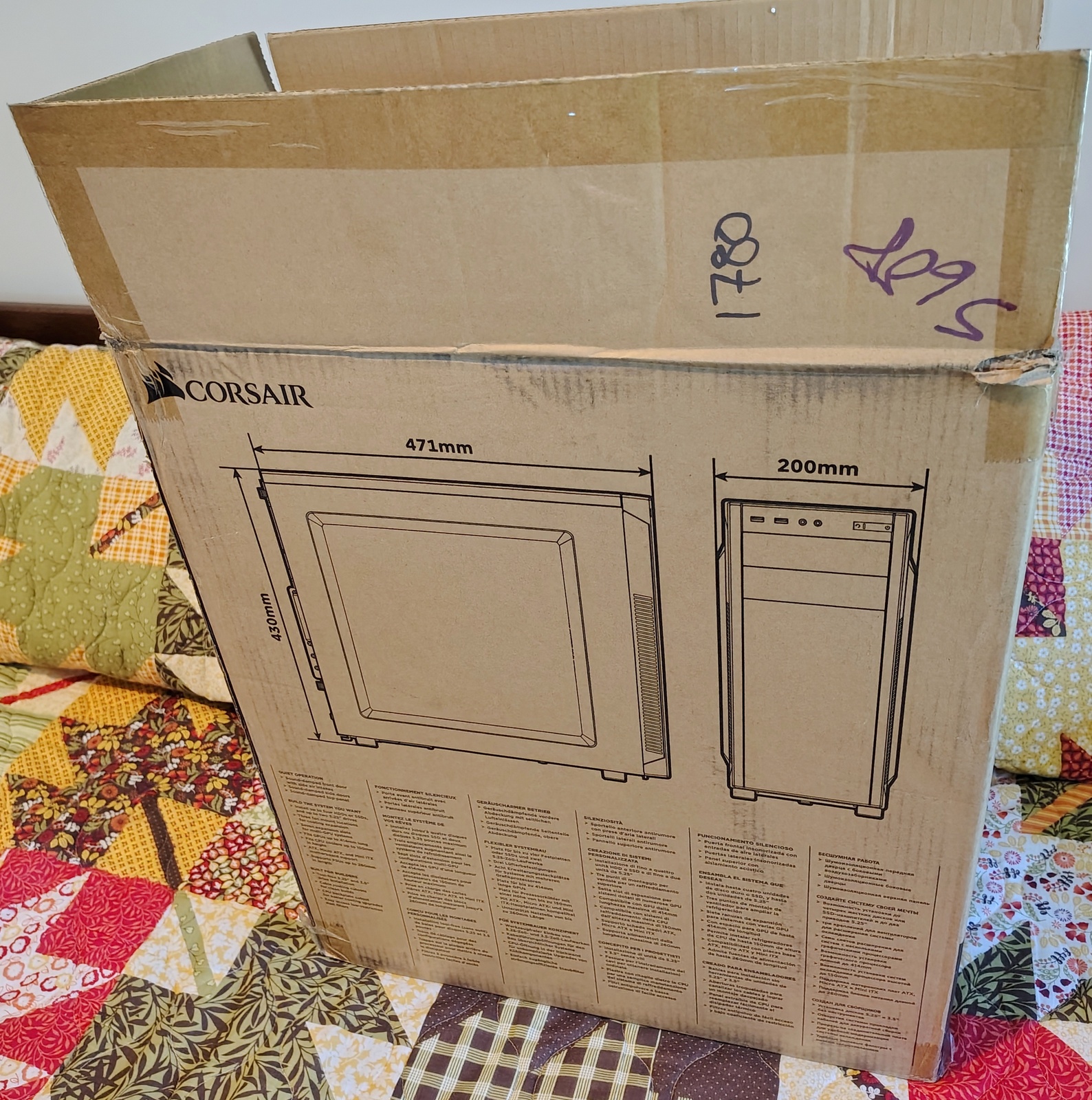 Up for sale is the original box and foam packing which came with a Black Corsair Carbide 100R Silent Edition. It measures just about 22 inches tall by about 10 inches wide by about 19 inches long. Even though this is fairly light weight ~ 4#, shipping is expensive because it is bulky and charged by dimensional weight. You may pick this up locally and save on the shipping! The original shipping labels have been removed and there are a couple of minor defects – LOOK AT THE PICTURES!. This came with a Silent Edition case, but there should be no reason it wouldn’t fit a regular 100R as well.