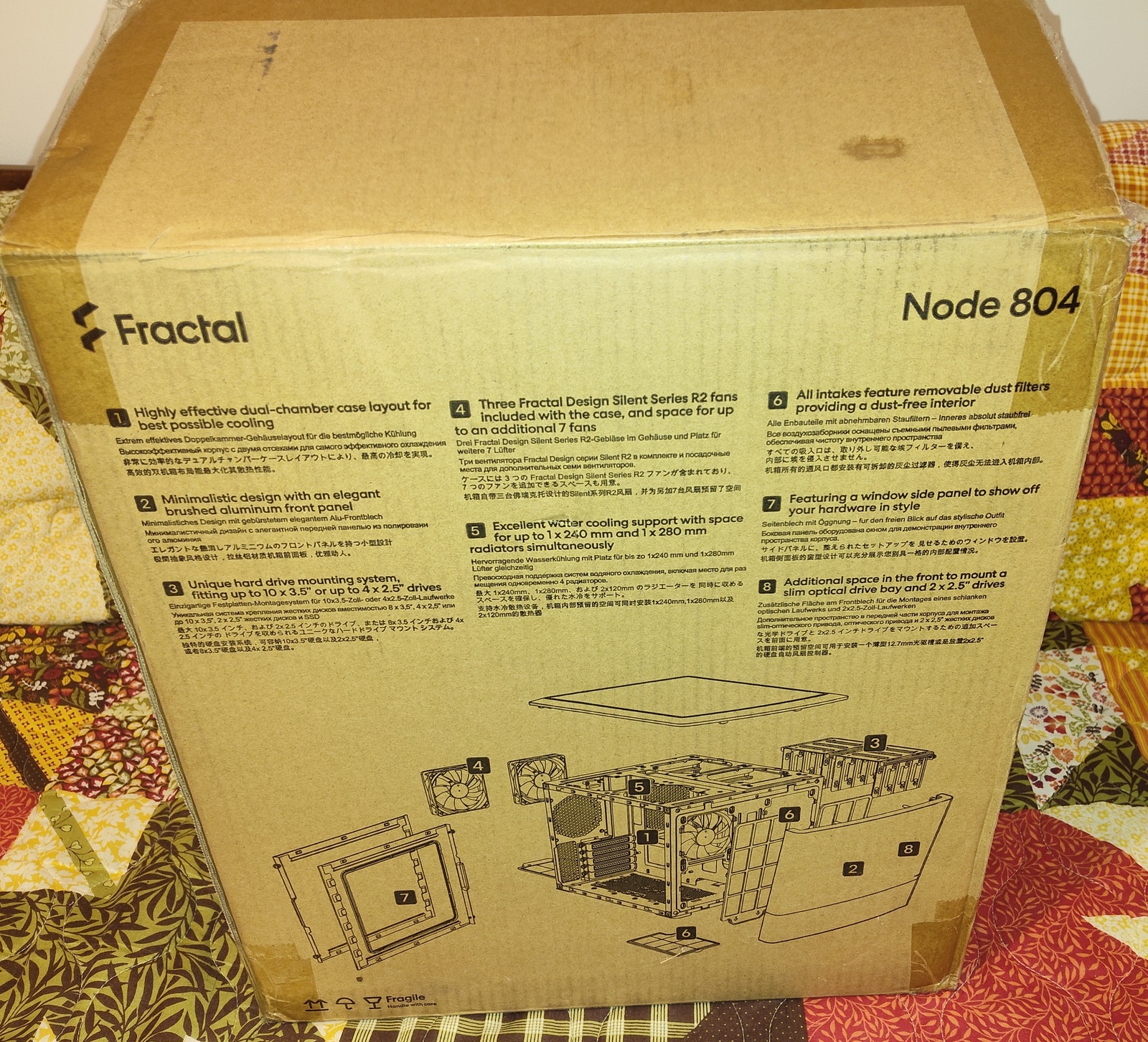 You are purchasing one original box and packing for a black Fractal Design Node 804 case only.