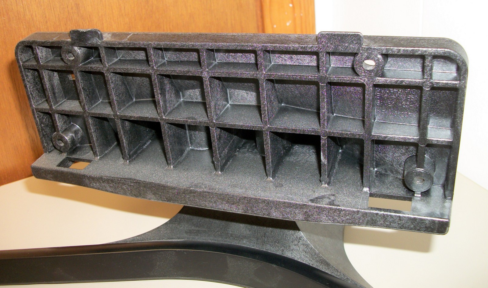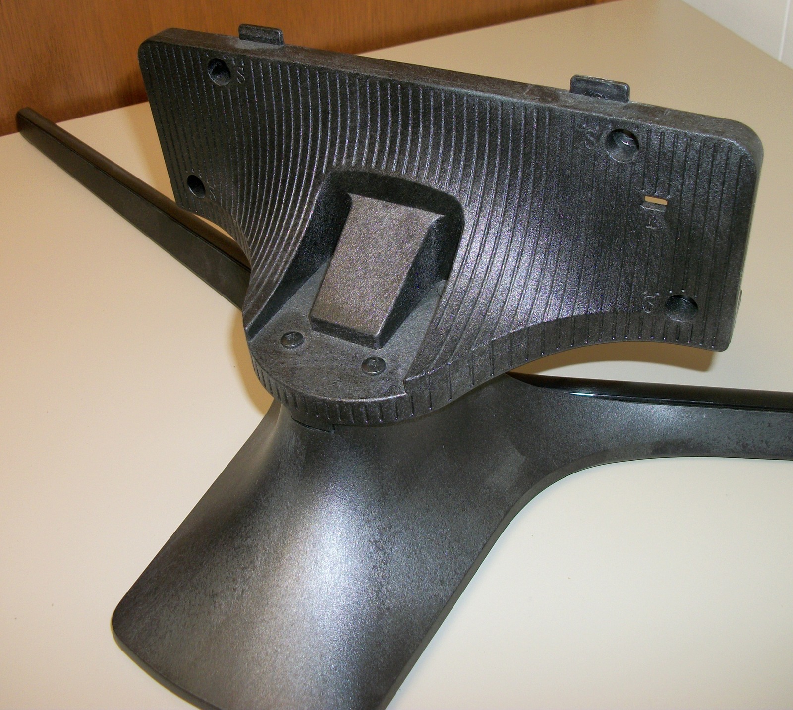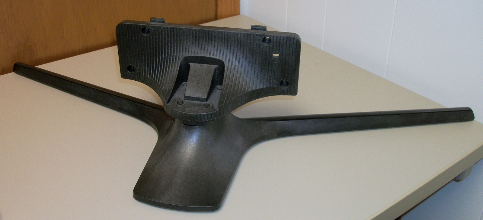 Up for sale is the original stand / base for a Samsung UN43J5200 43″ television – it is in good used condition and is left over after finally getting the TV mounted to the wall. This is from a TV manufactured in 2018. The screws which hold the vertical piece to the TV are included. A sticker on the stand has ‘PC GF 20% K21294 HF-3200H’ written on it. This may work with other Samsung TVs, but please check with Samsung for compatibility with your TV BEFORE you purchase this stand!