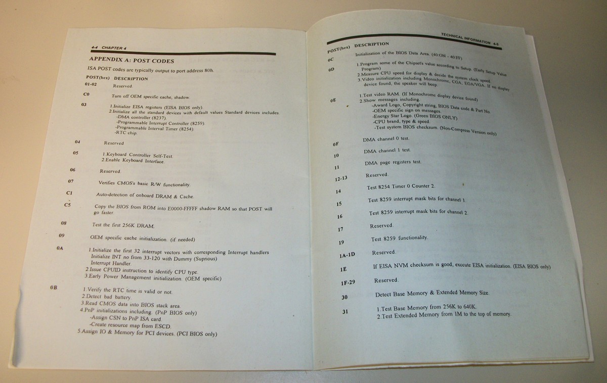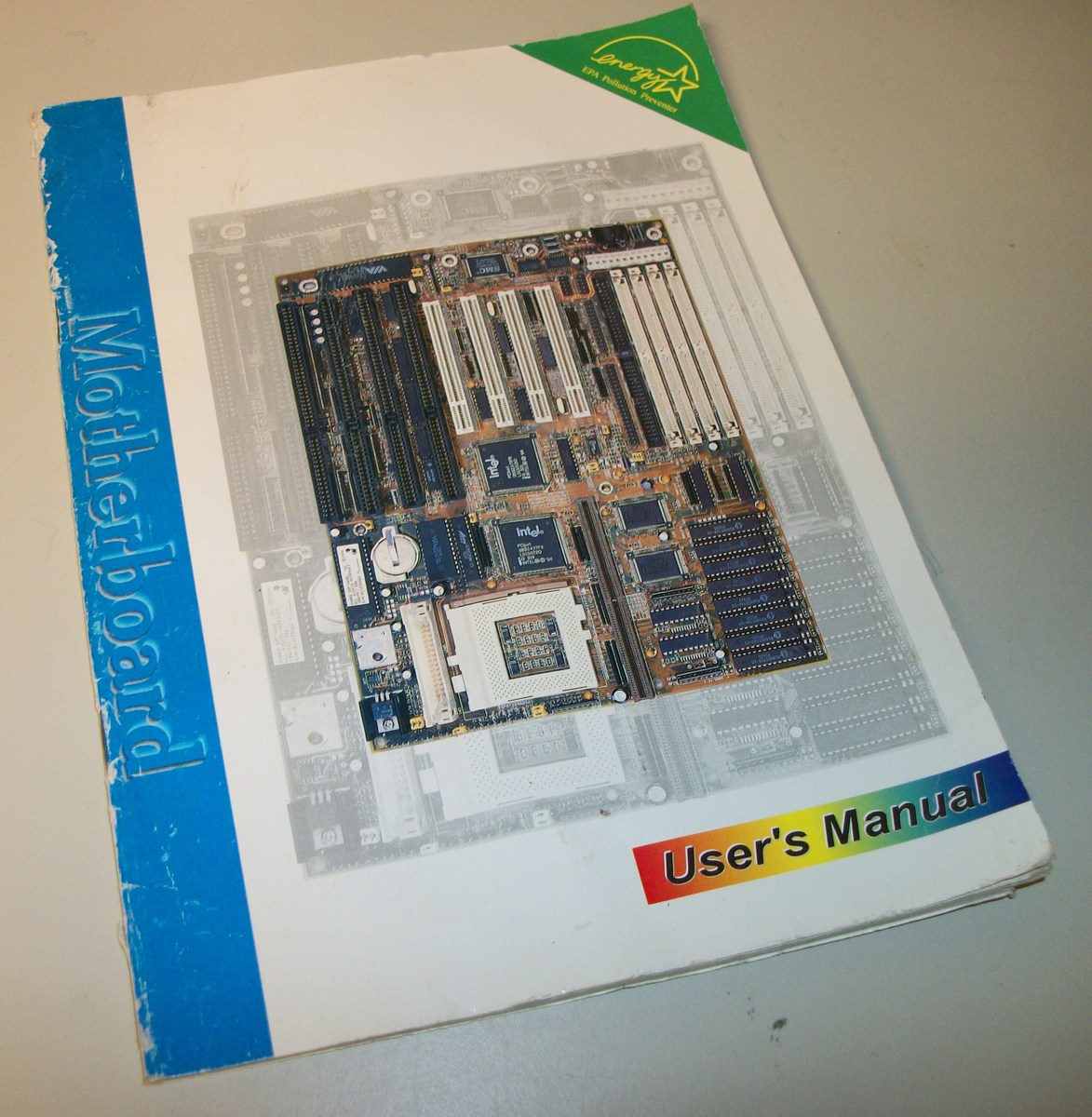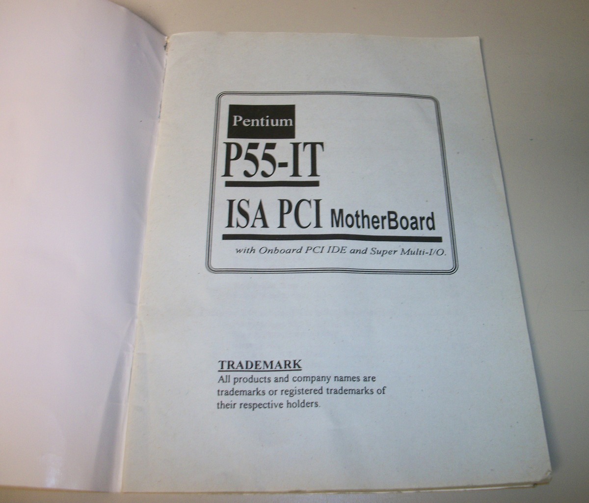 Up for sale is the original user’s manual for a P55-IT Intel Pentium Motherboard Mainboard from about 1996. It has some wear on the spine and some creases – see pictures! One of the appendices has POST codes.