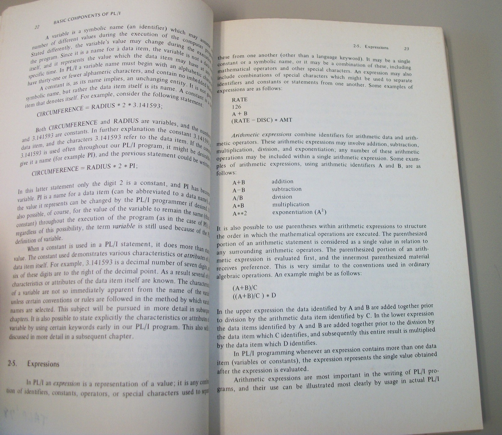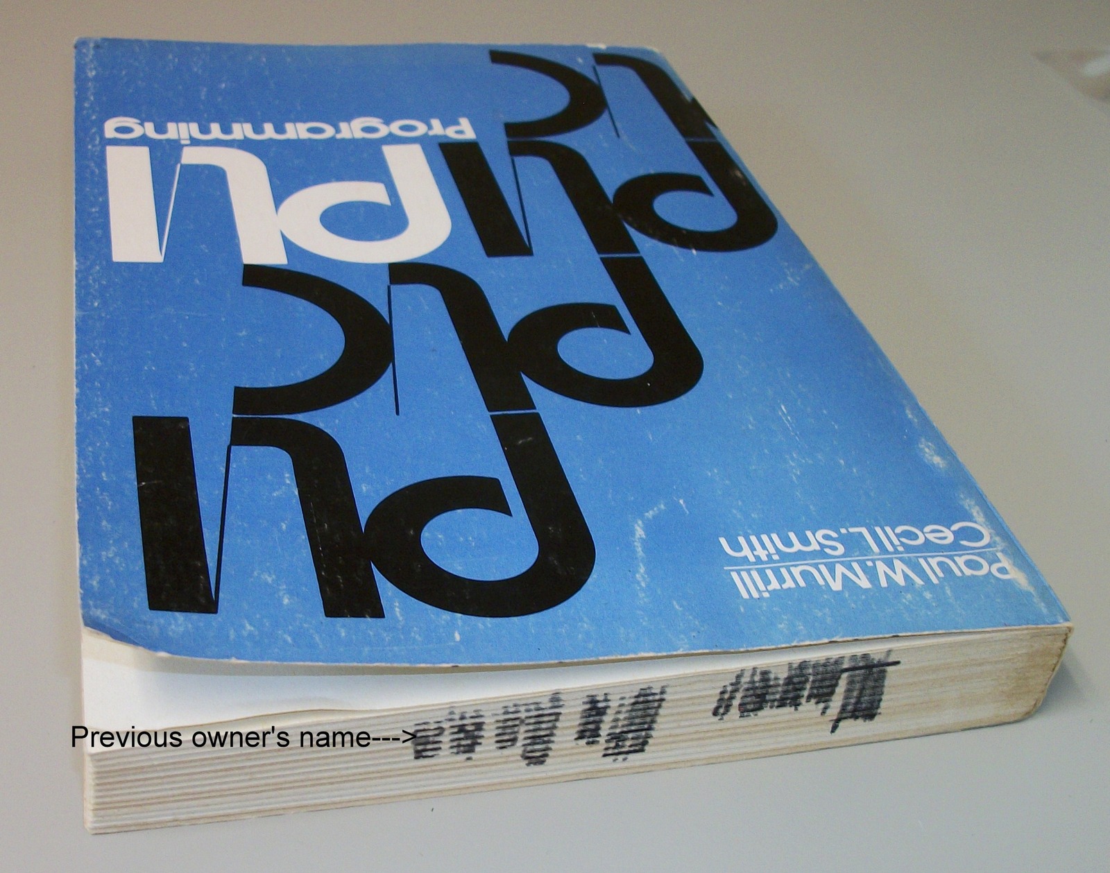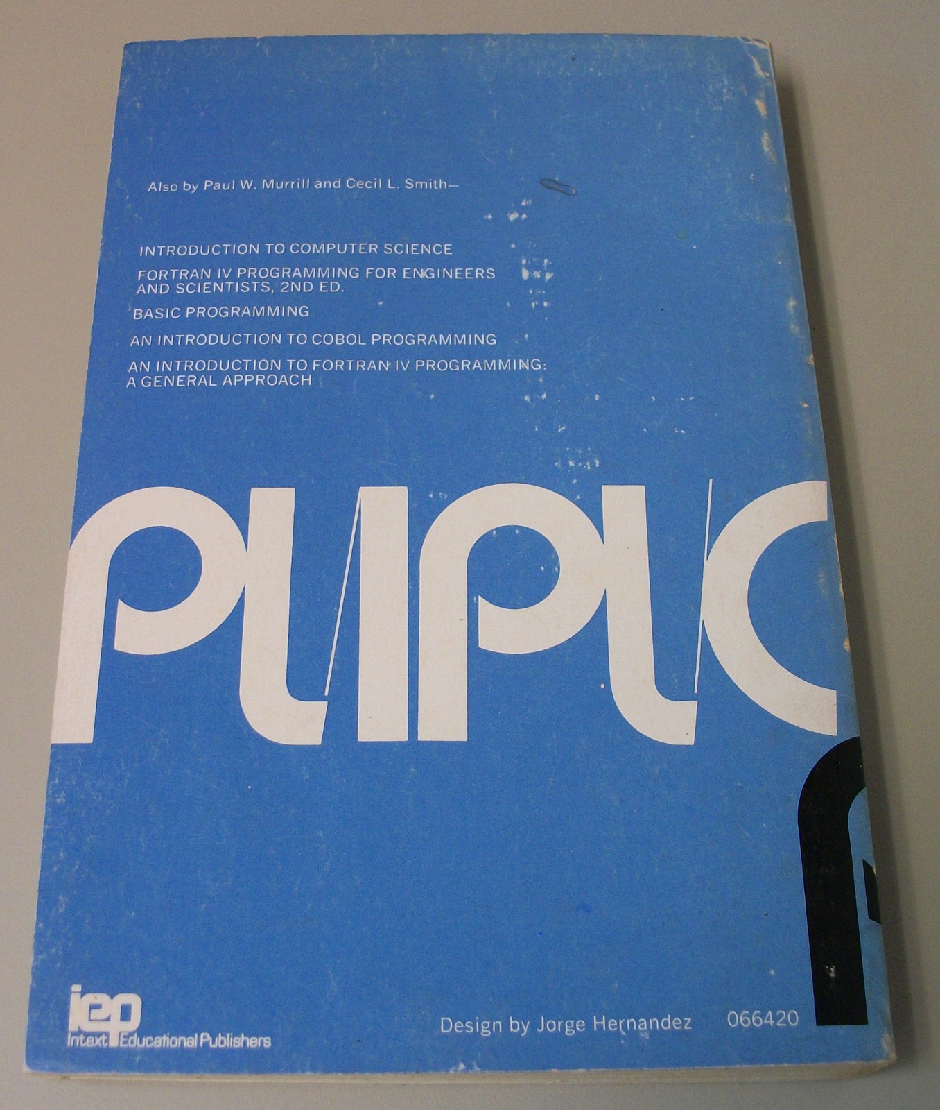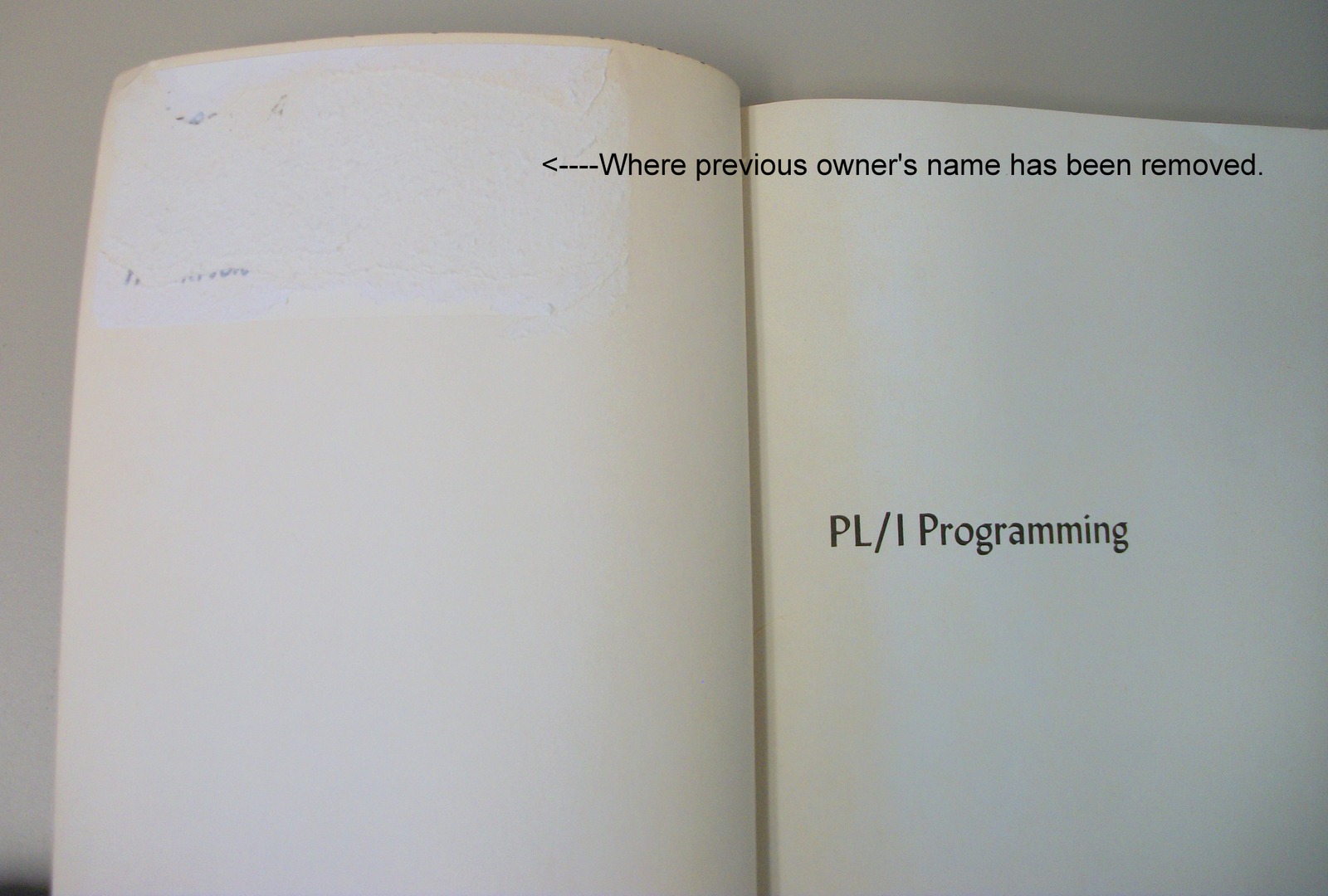 Up for sale is a softcover book: PL/I Programming by Paul W. Murrill and Cecil L. Smith. This is in good used condition with the exception of some scuffs / wear on the cover and a torn section on the inside cover where the name of the previous owner was. On the top is a spot where the former owner’s name has been blacked out with magic marker. Examine the pictures BEFORE you make your decision to purchase this book! 1973.