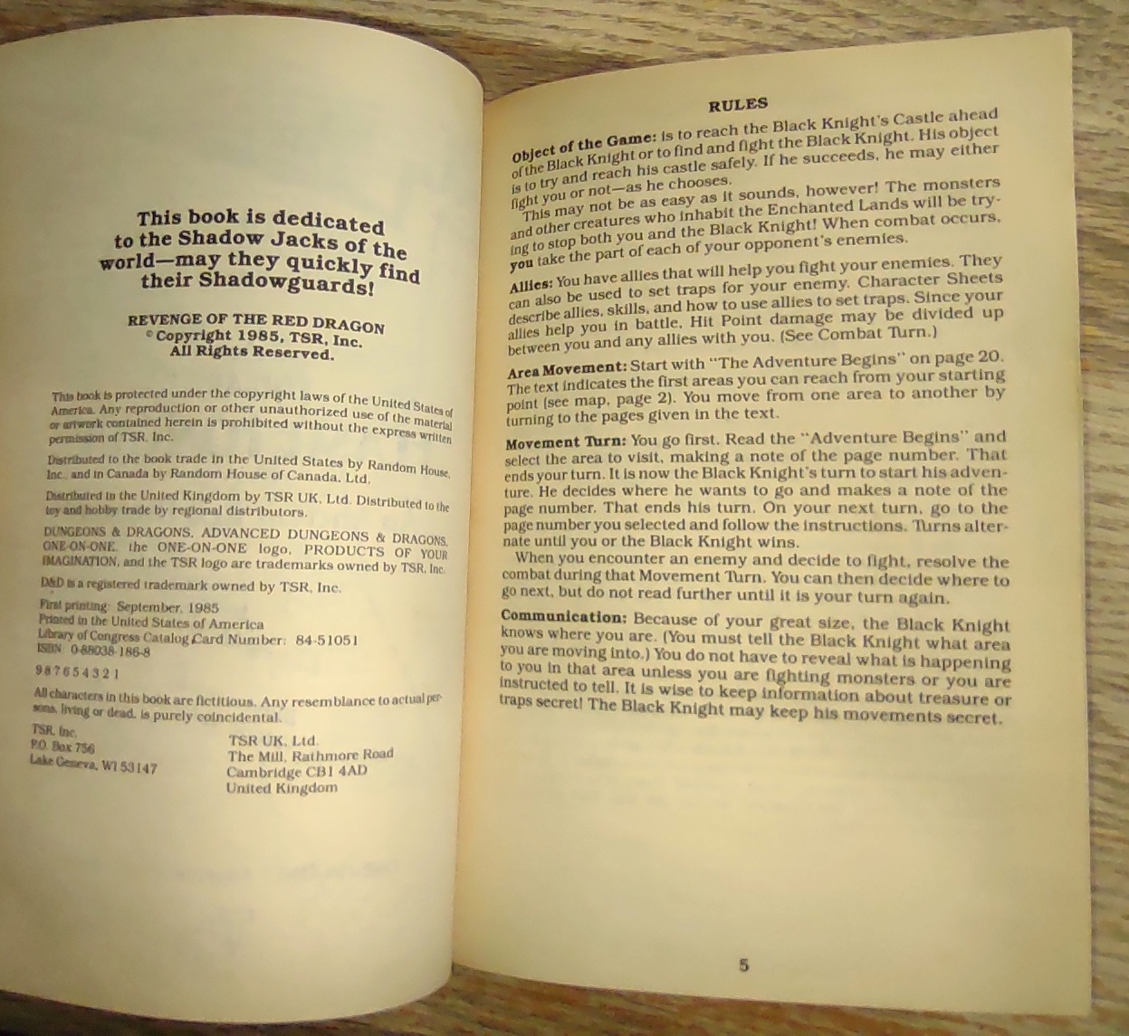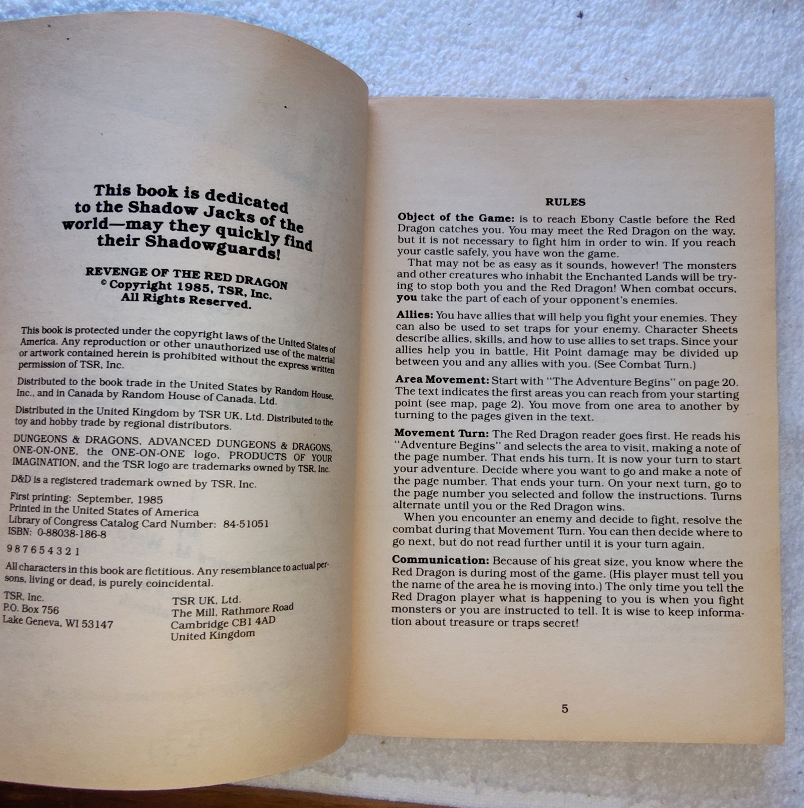 From Revenge of the Red Dragon, this is a two book set for playing against another person – one of you would read this book playing as the Red Dragon and your opponent would read the other book playing as the Raven Quickblood, The Black Knight. Both books are included.