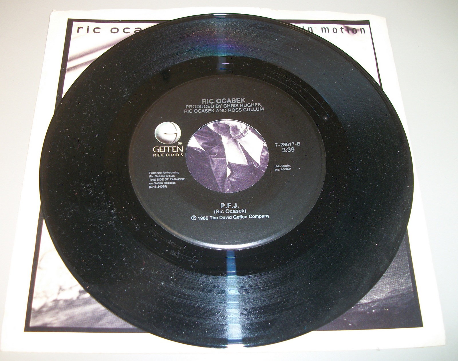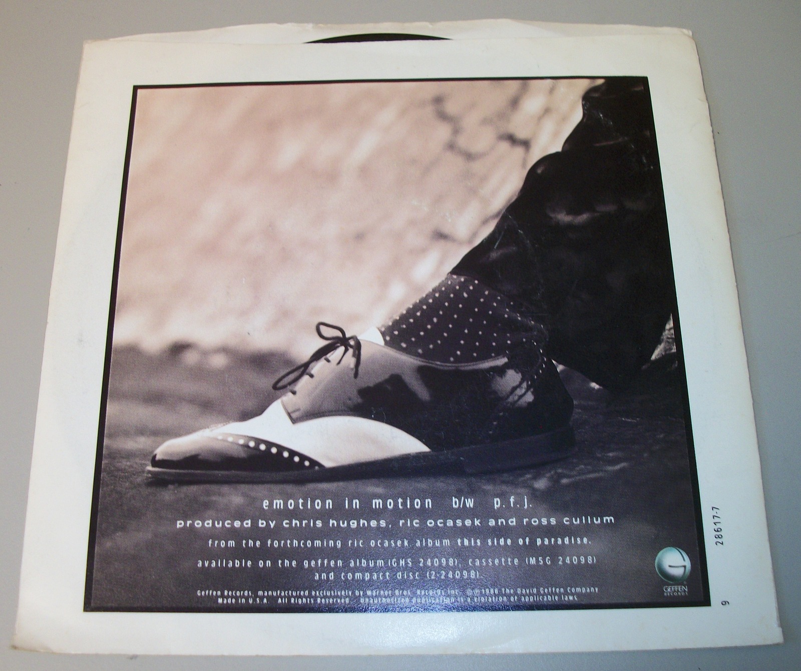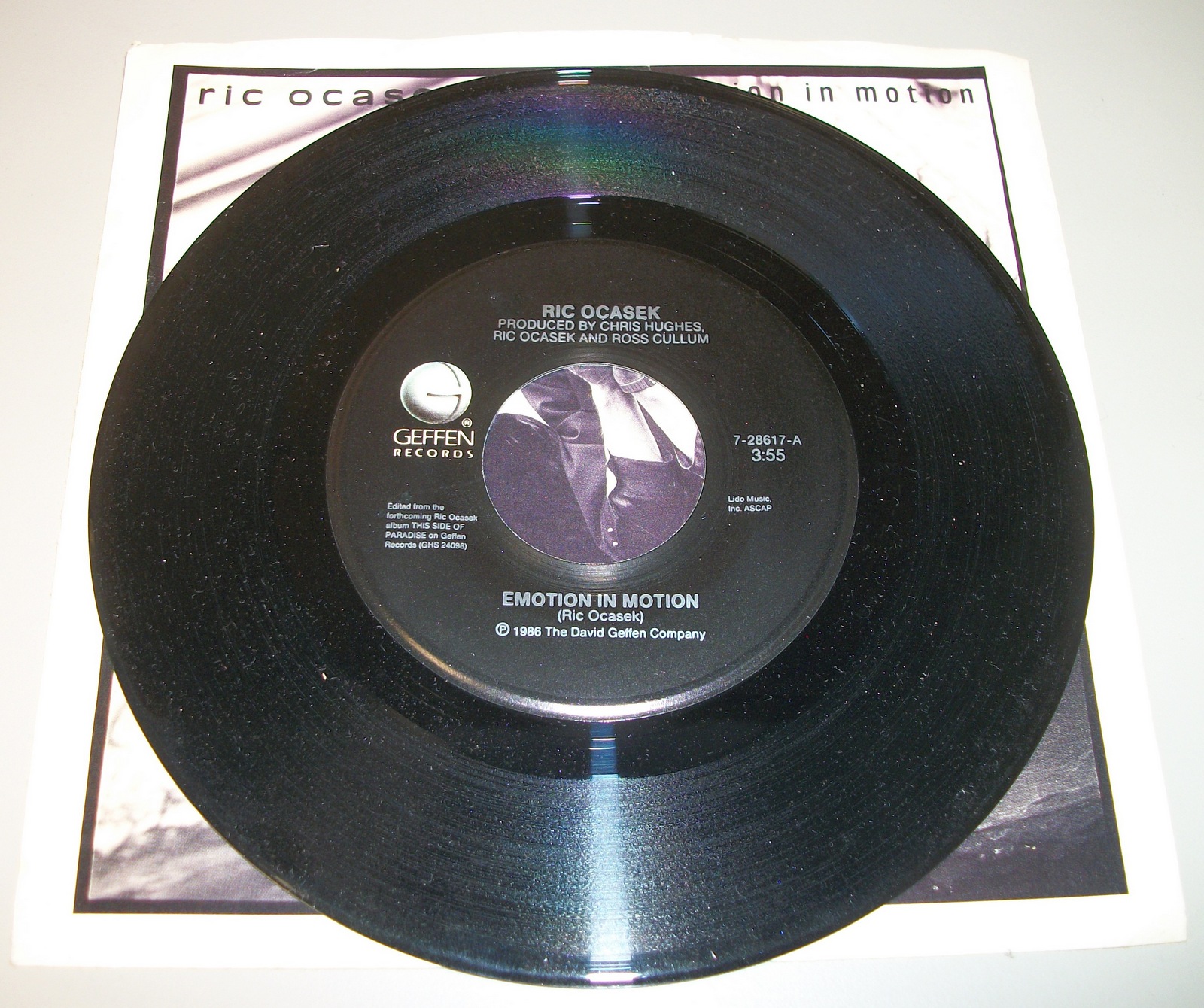 Up for sale is a 45 of the single Emotion In Motion by Ric Ocasek. from 1986 on 7″ vinyl. LOOK AT THE PICTURES! Used condition, some wear around the edges and light creases. This is in pretty good shape for a decades old record.