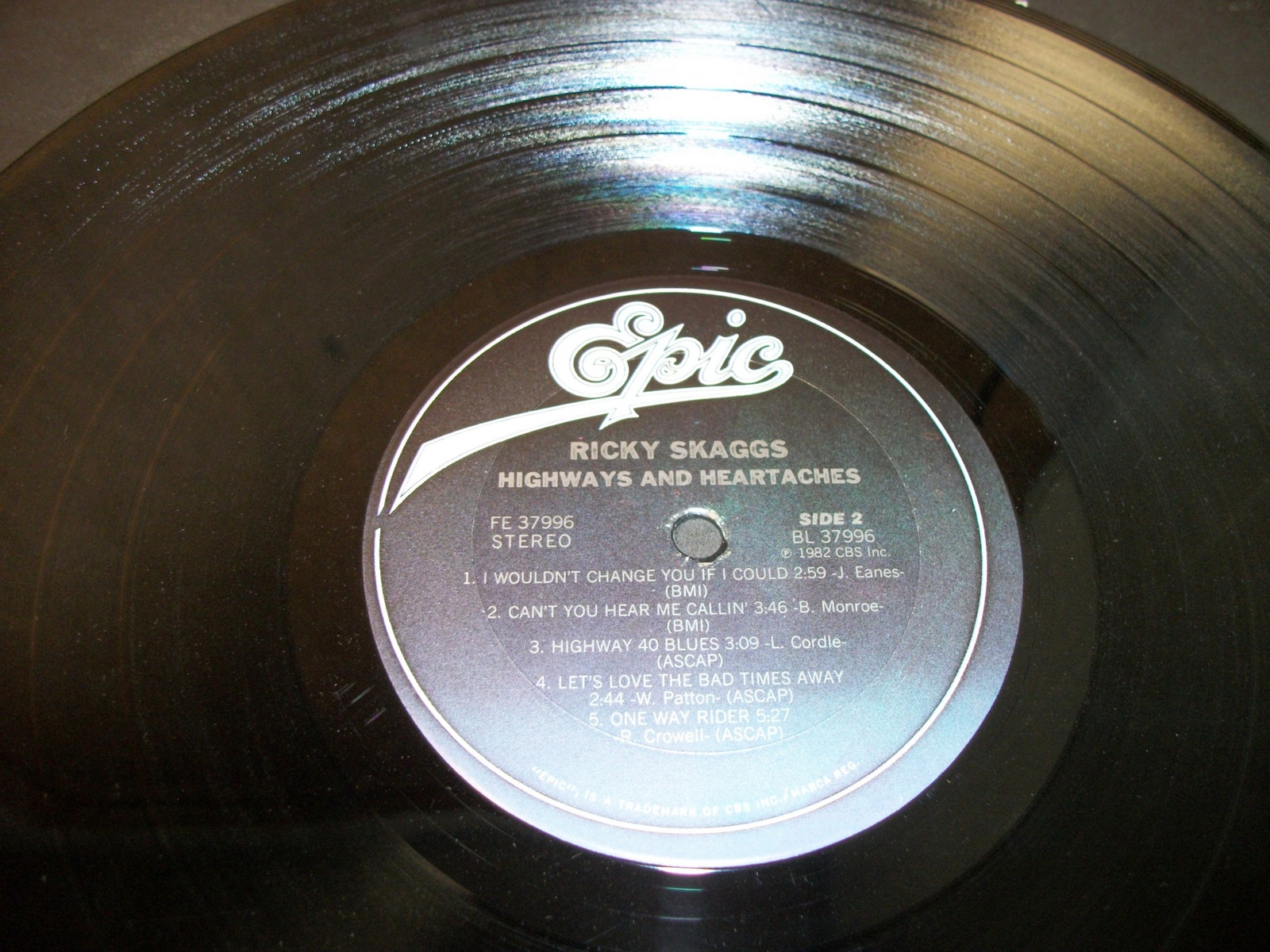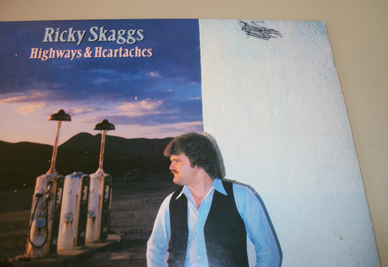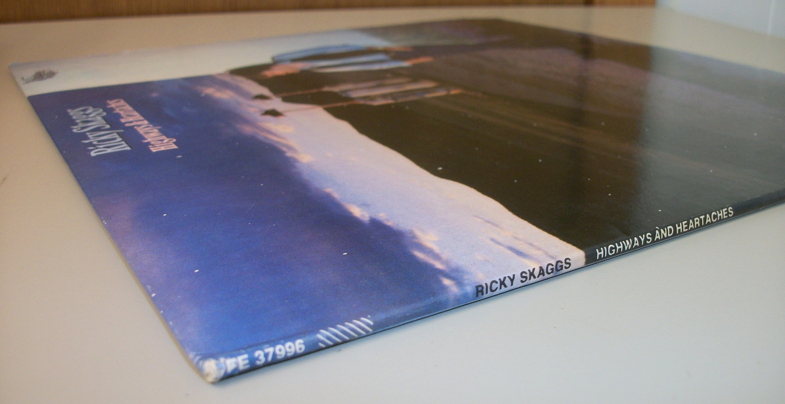 Up for sale is Ricky Skaggs’ album Highways & Heartaches on vinyl. LOOK AT THE PICTURES! Used condition, some wear around the edges and light creases. Joan wrote her name on the front, then Manley crossed out Joan and wrote his name – see PICTURES! The insert is lightly wrinkled and torn from the record breaking through the side, but it is in overall pretty good condition for an almost 40 year old record – see pictures!