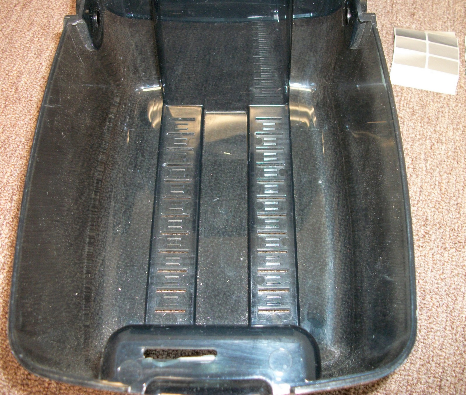 Up for sale is a good, used Ring King MDT070 floppy diskette storage box. It has some scrapes and scratches from use over the years and the dividers are included, but most have the tabs broken off which fit into the slots inside of the case – see pictures. This is for storing 5.25″ floppy diskettes and comes with 5 plastic dividers (most with the tabs broken)and some write-protect stickers.