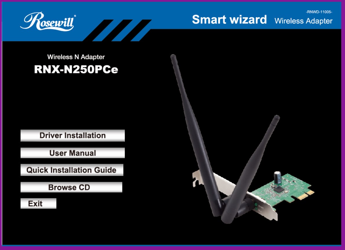 Up for sale is the original install CD and Quick Installation Guide which came with a Rosewill RNX-N250PCe wireless network card from 2013. RNWD-11005. You get the original CD w/ paper sleeve and Quick Installation Guide.