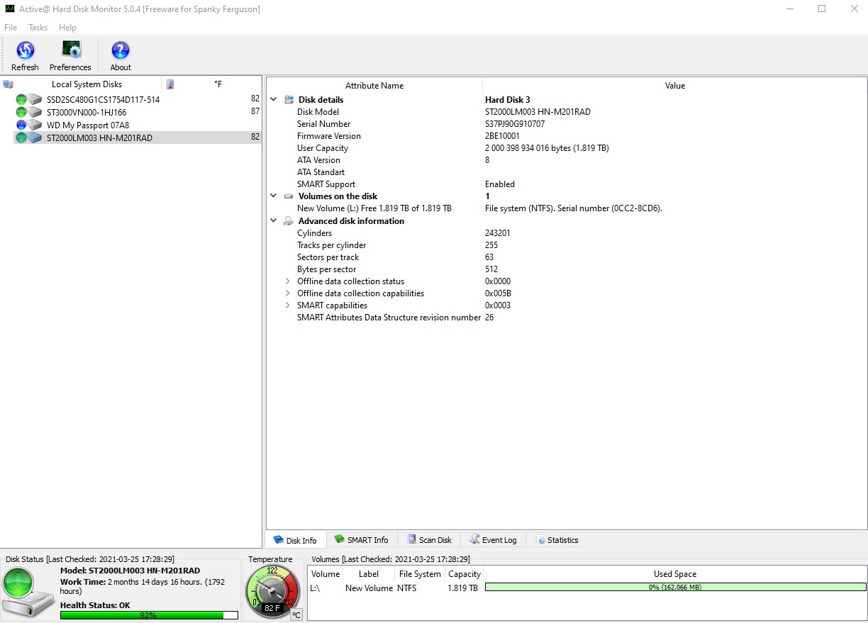 - 2 Months, 14 Days, 16 Hours of work time (According to Active Disk Monitor)
