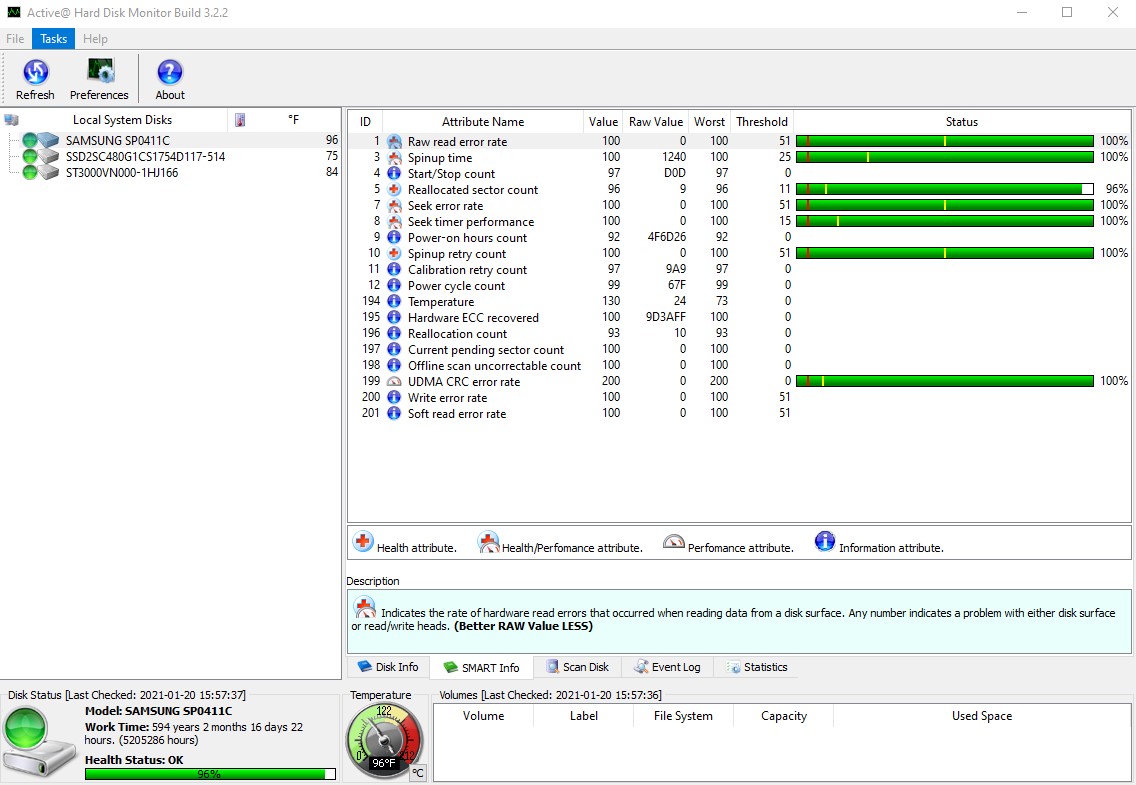 - 5205286 Hours (594 Years, 2 Months, 16 Days or so) – according to Active Hard Disk Monitor 3.2.2