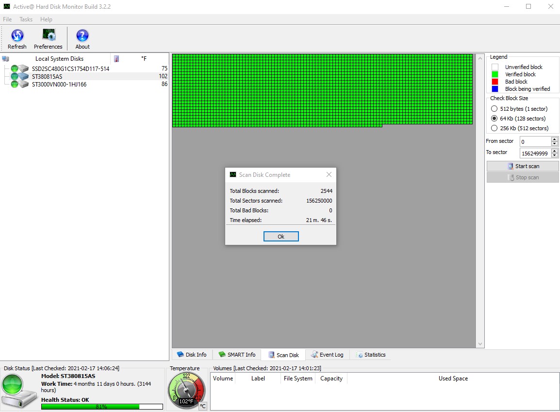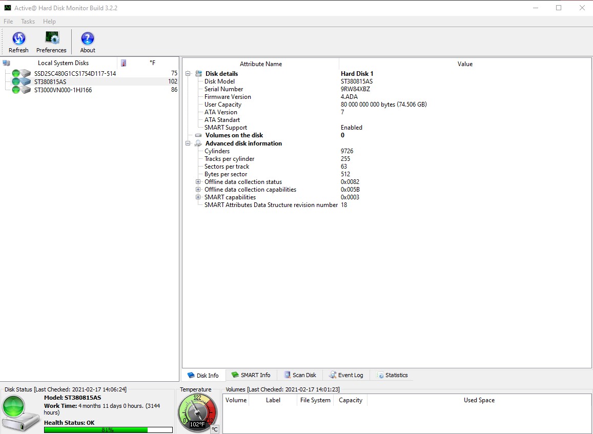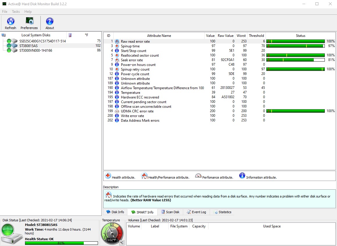 - 3144 Hours (4 Months, 11 Days, 0 Hours) – according to Active Hard Disk Monitor 3.2.2