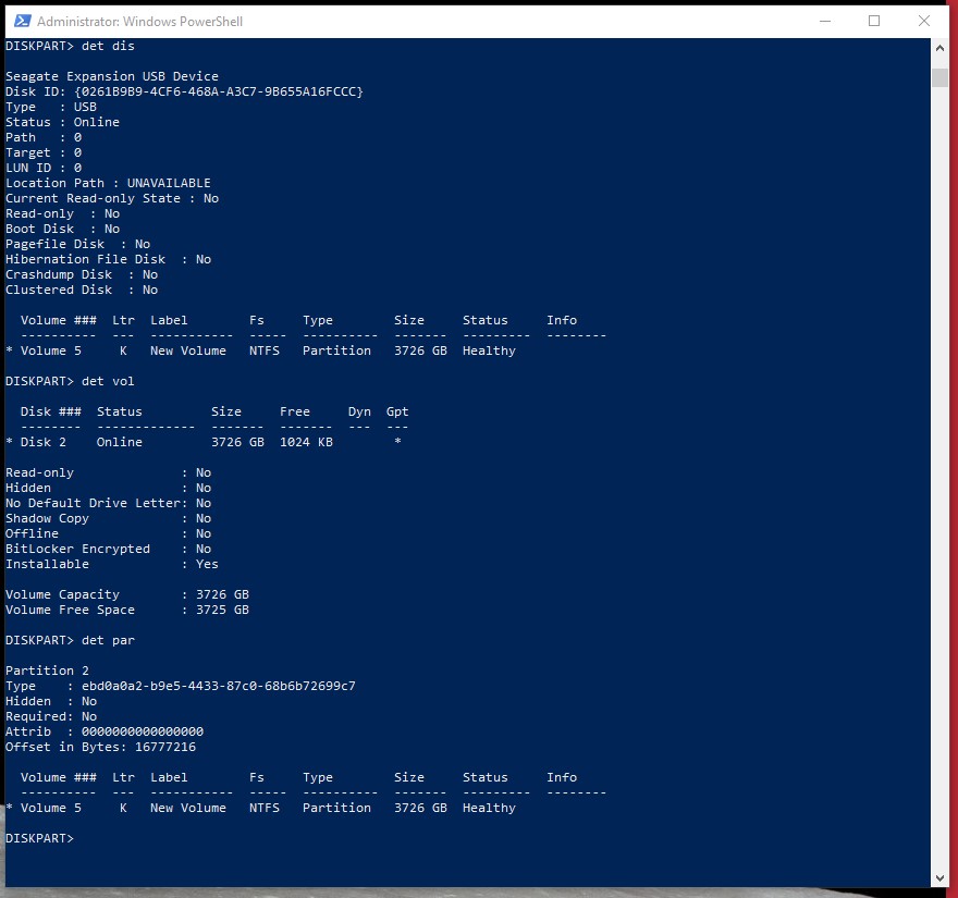 Up for sale is a used 4TB external portable (2.5″) hard drive. This was put into service as a destination for backups in 2020 and has now been replaced with a larger capacity, newer drive. It has been wiped clean and Seagate SeaTools’ software gave it a passing score in the test called ‘Fix All Long’. LOOK AT THE PICTURES! This hard drive is in good, used condition (according to Seagate’s Seatools software) and what you see in the pictures is what you get. This has one GPT partition with one volume formatted NTFS for use with Windows systems.