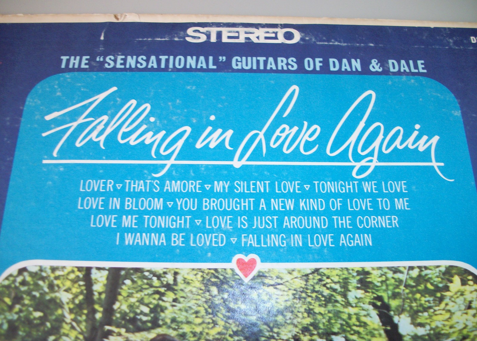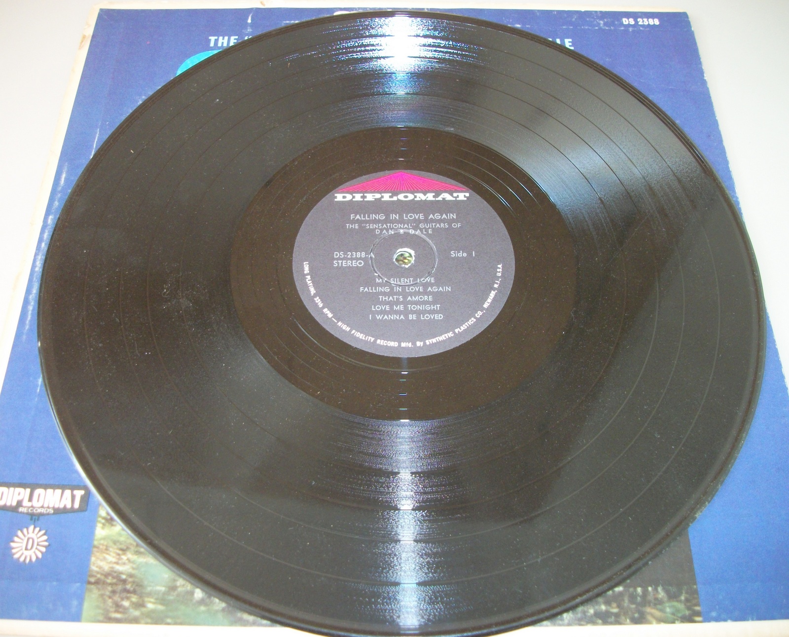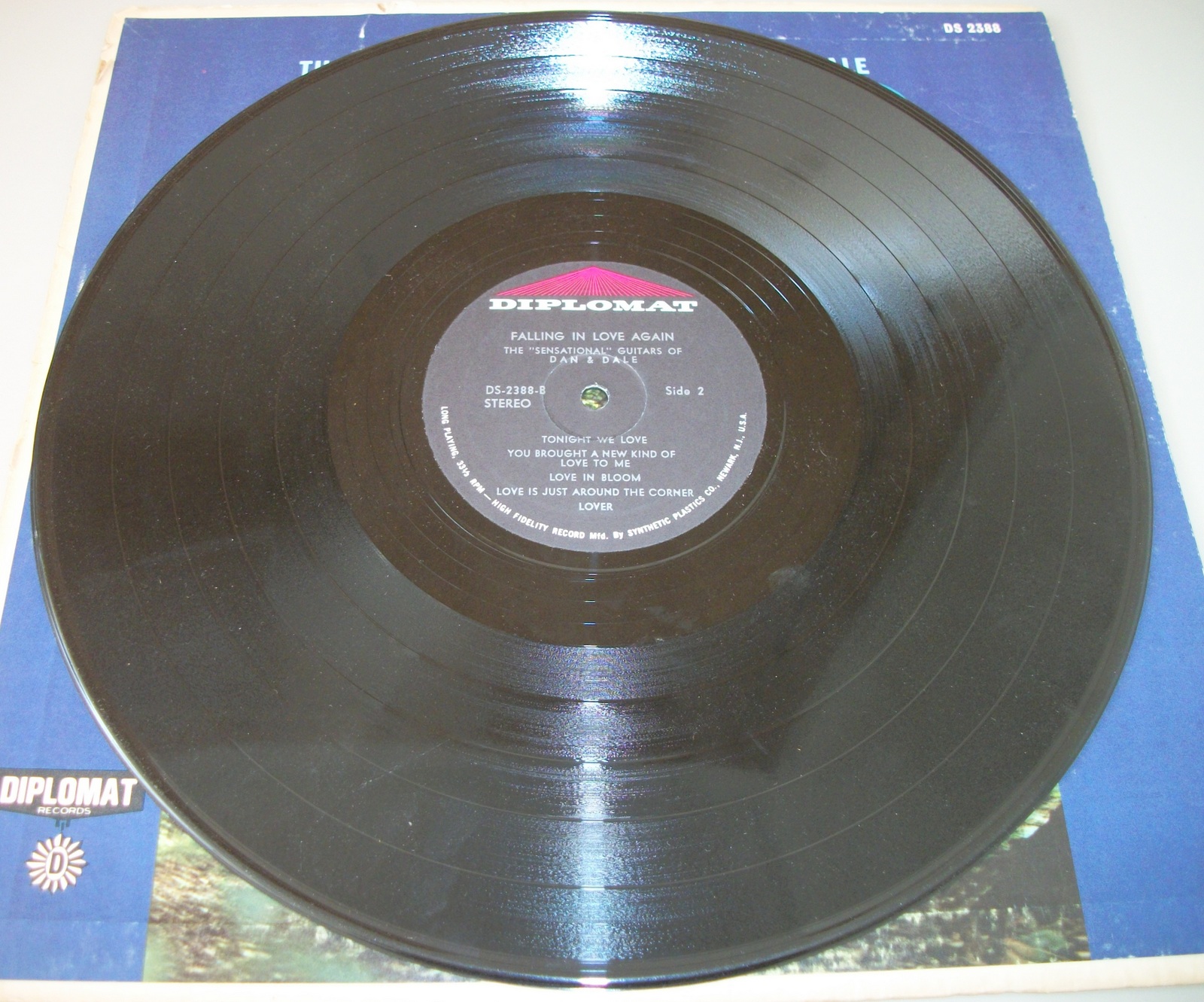 Up for sale is The Sensational Guitars of Dan & Dale’ album Falling In Love Again on vinyl. LOOK AT THE PICTURES! Used condition, significant wear around the edges. The edge seams are coming apart from the record breaking through the side, record has some scratches, no sleeve – see pictures!